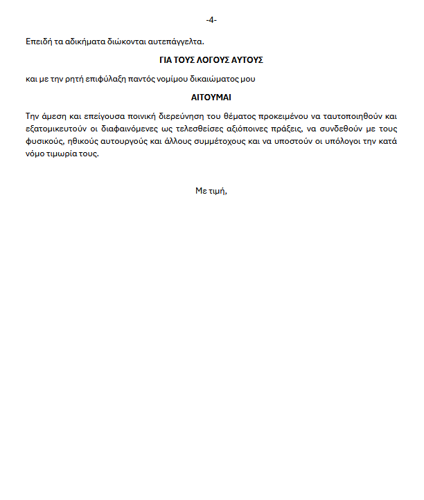 Αναλυτικά η μηνυτήρια αναφορά, όπως τη δημοσιοποίησε το κόμμα ΝΙΚΗ.