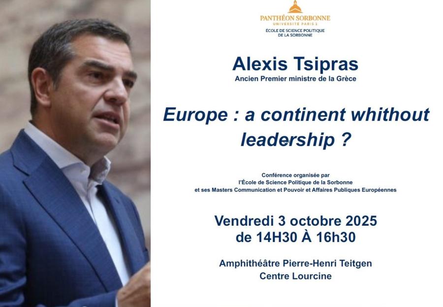 Στο πανεπιστήμιο της Γαλλίας Paris 1 Panthéon-Sorbonne θα μιλήσει ο Αλέξης Τσίπρας την Παρασκευή 3 Οκτωβρίου 2025.