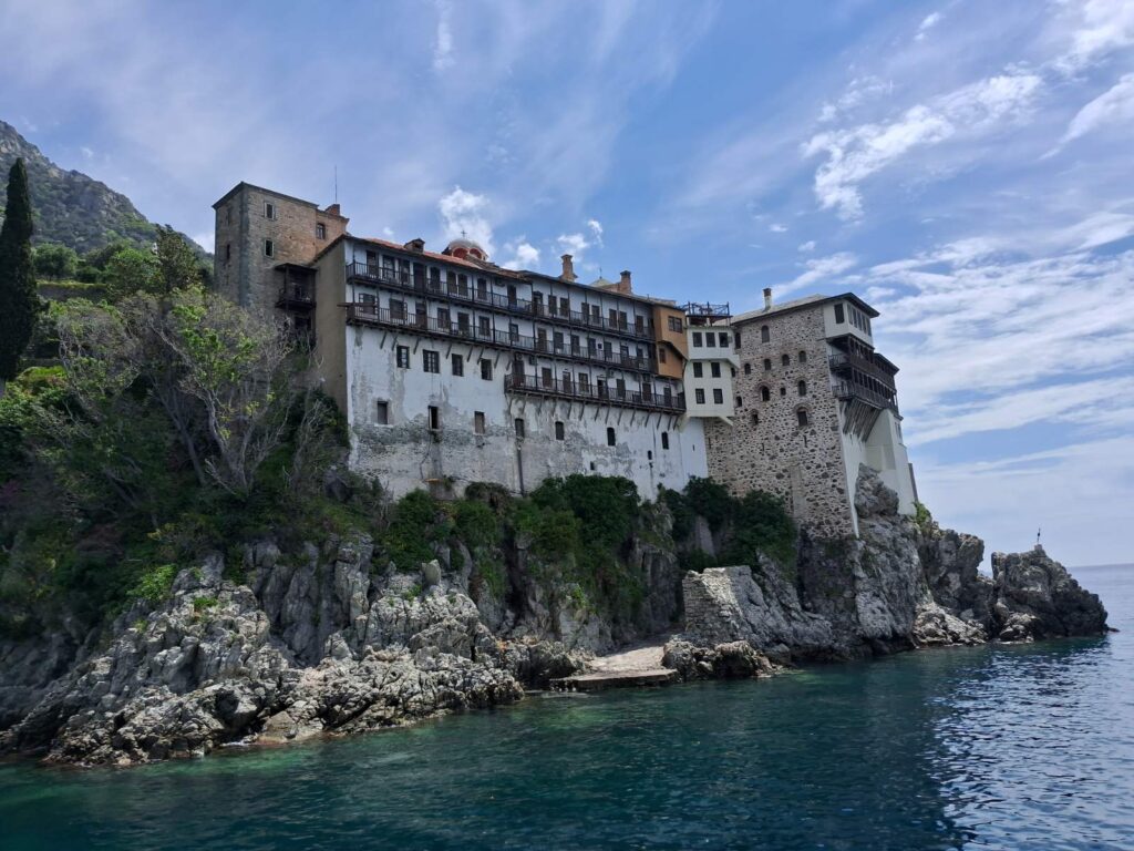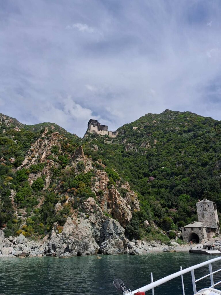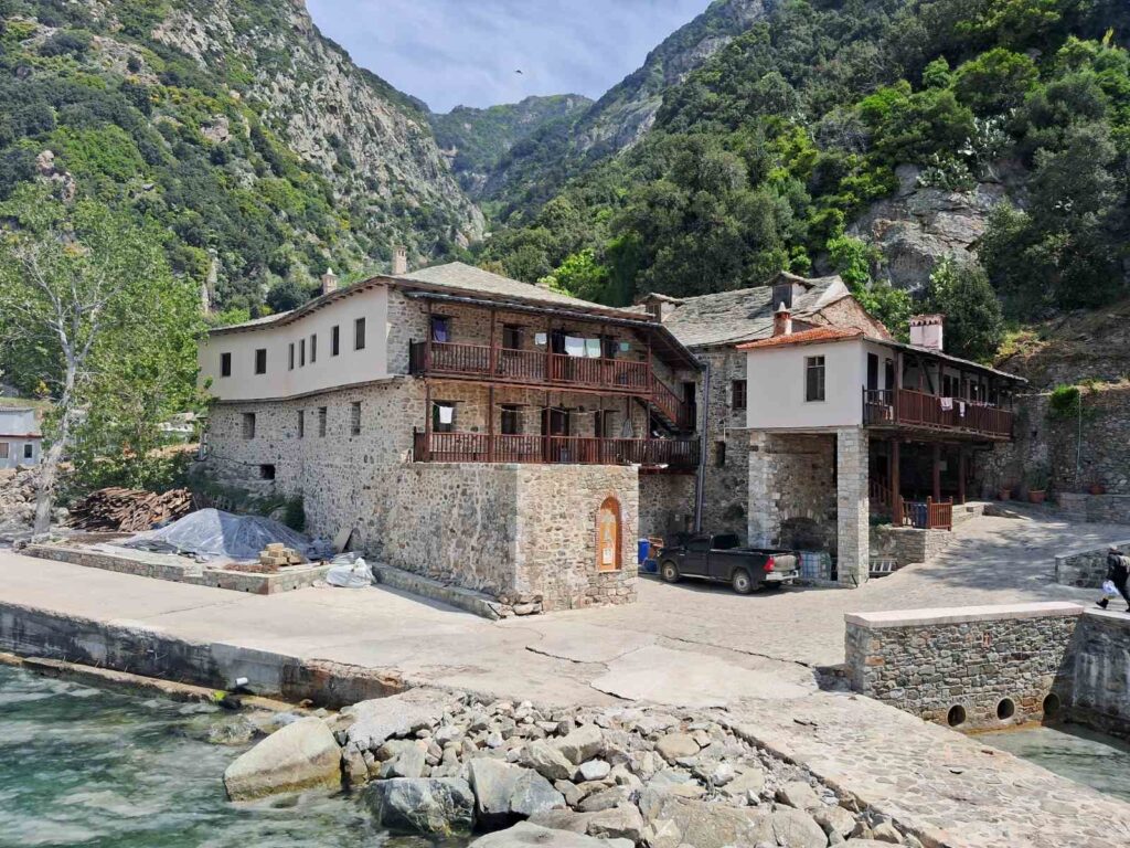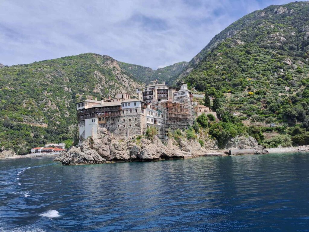 The Holy Monastery of Saint Gregory is located on the SW side of the Athos peninsula and between the Monasteries of Simonos Petra and Dionysios. It was built on a rock, 30 meters above the sea.