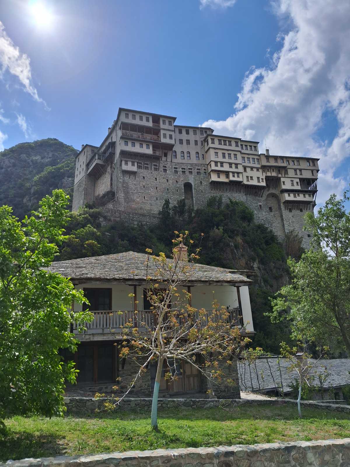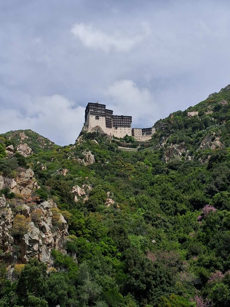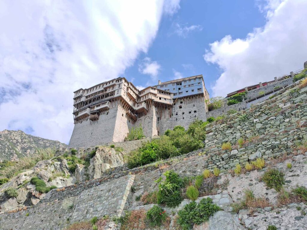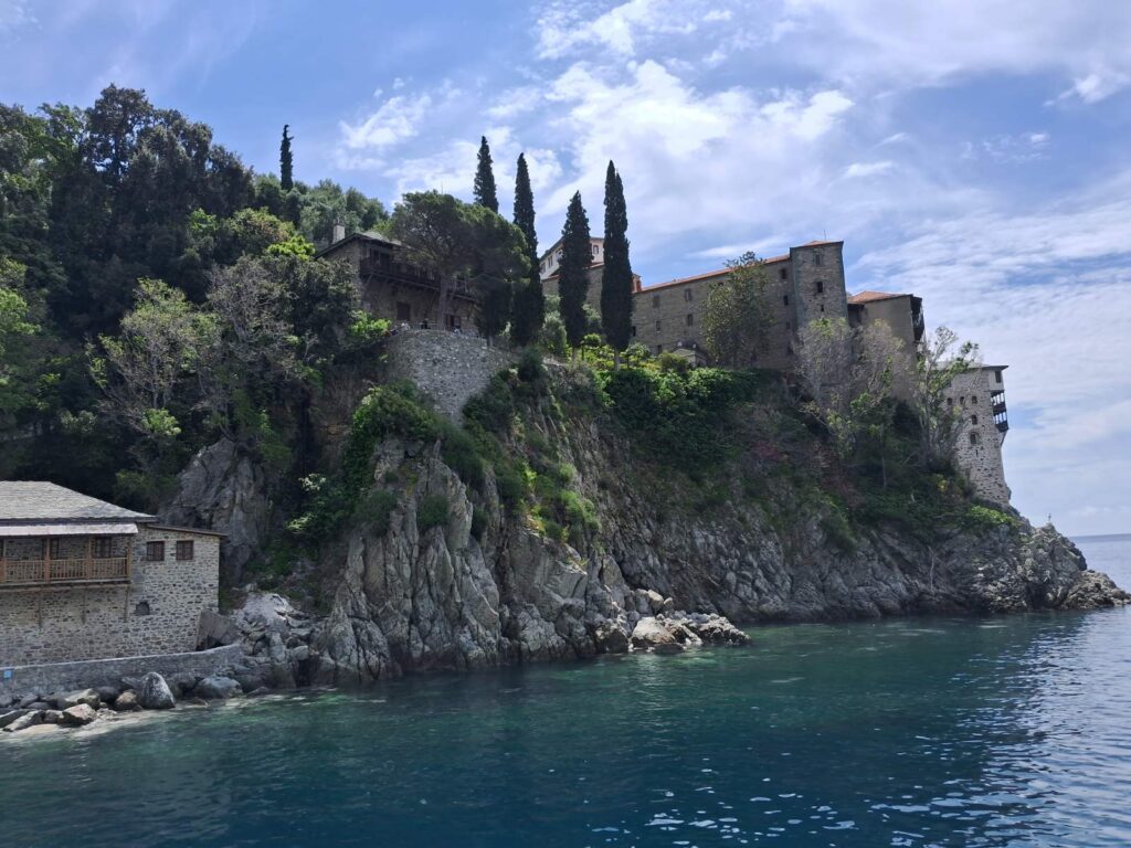 The Holy Monastery of Saint Gregory is located on the SW side of the Athos peninsula and between the Monasteries of Simonos Petra and Dionysios. It was built on a rock, 30 meters above the sea.