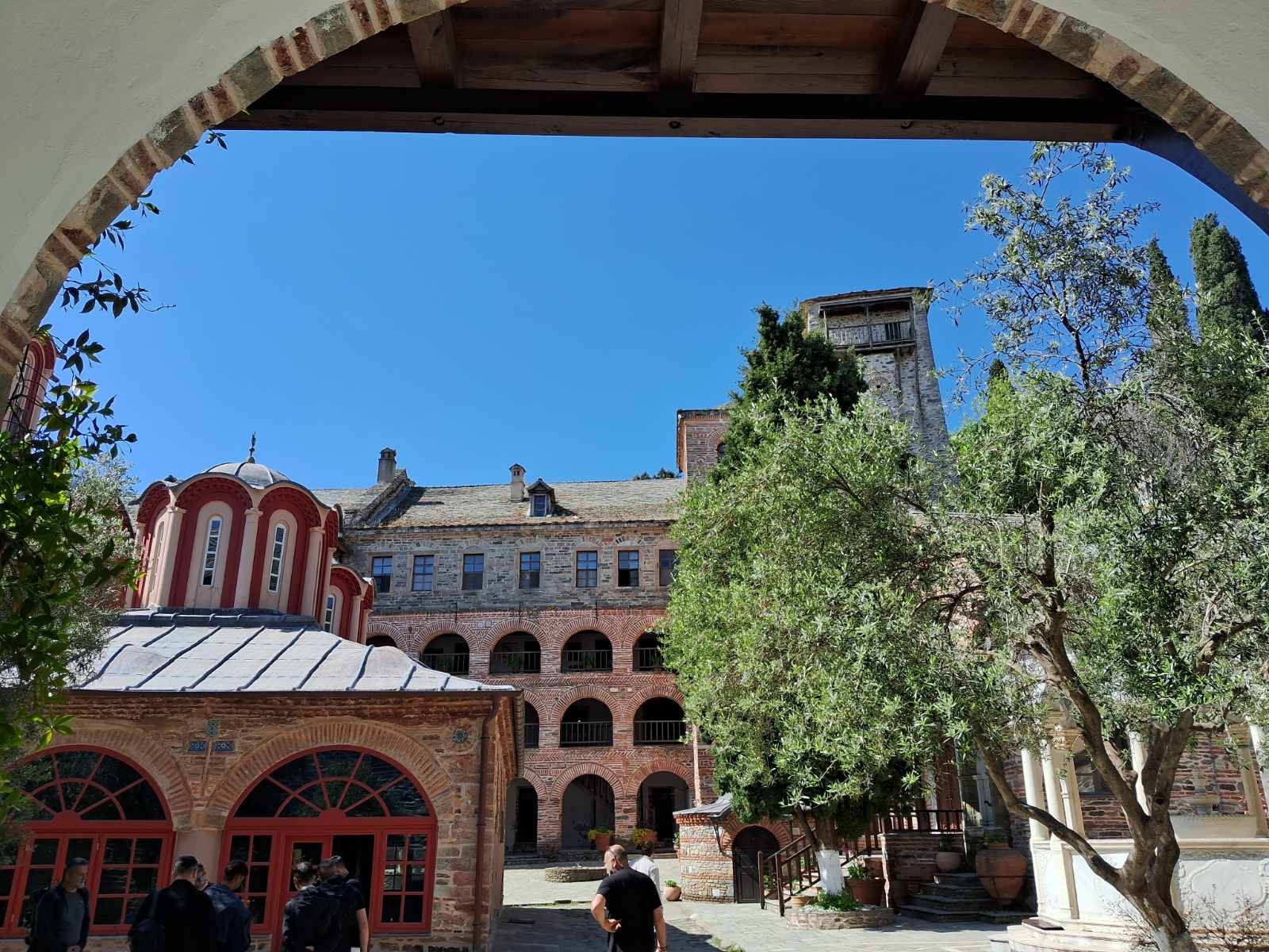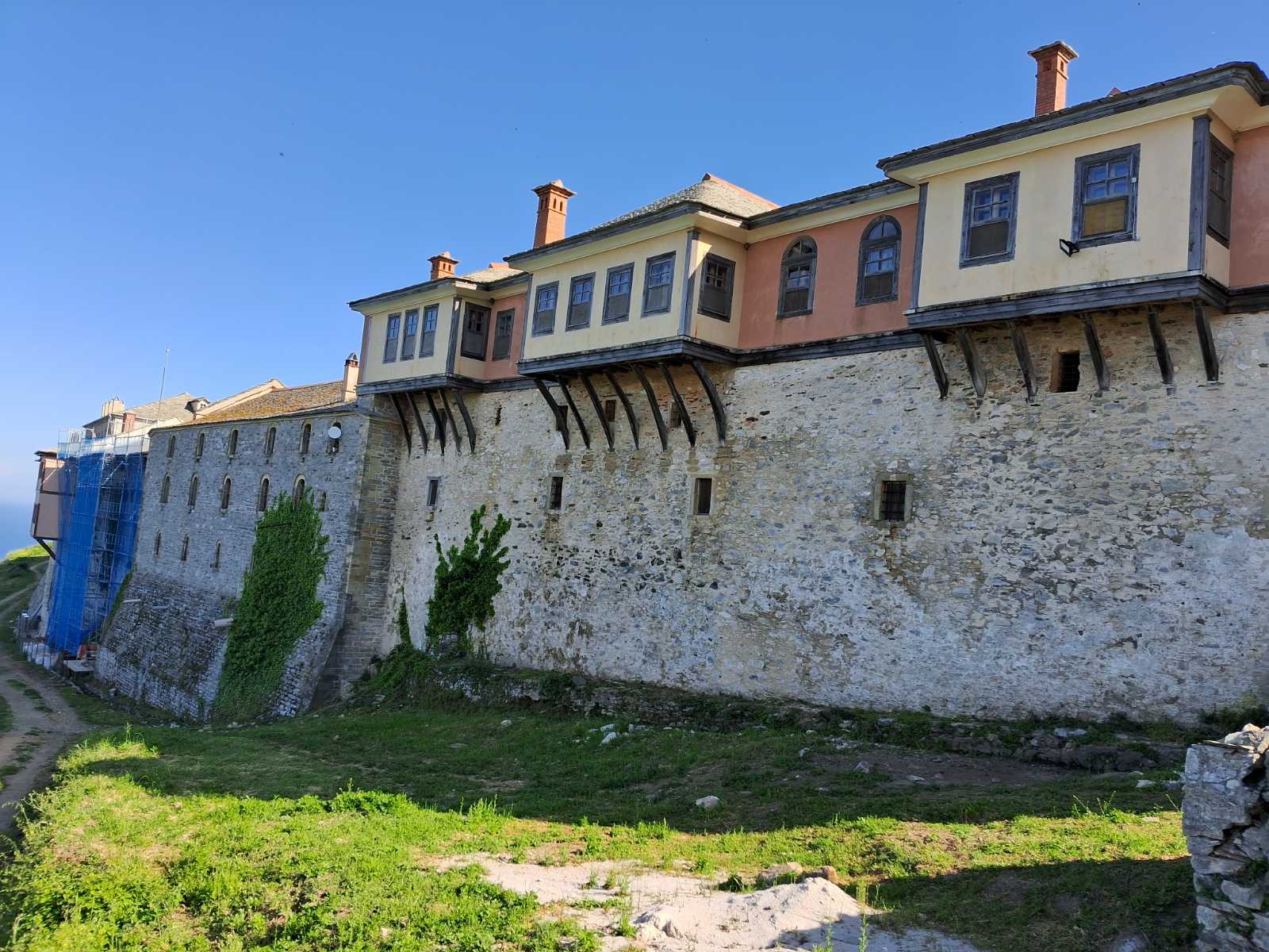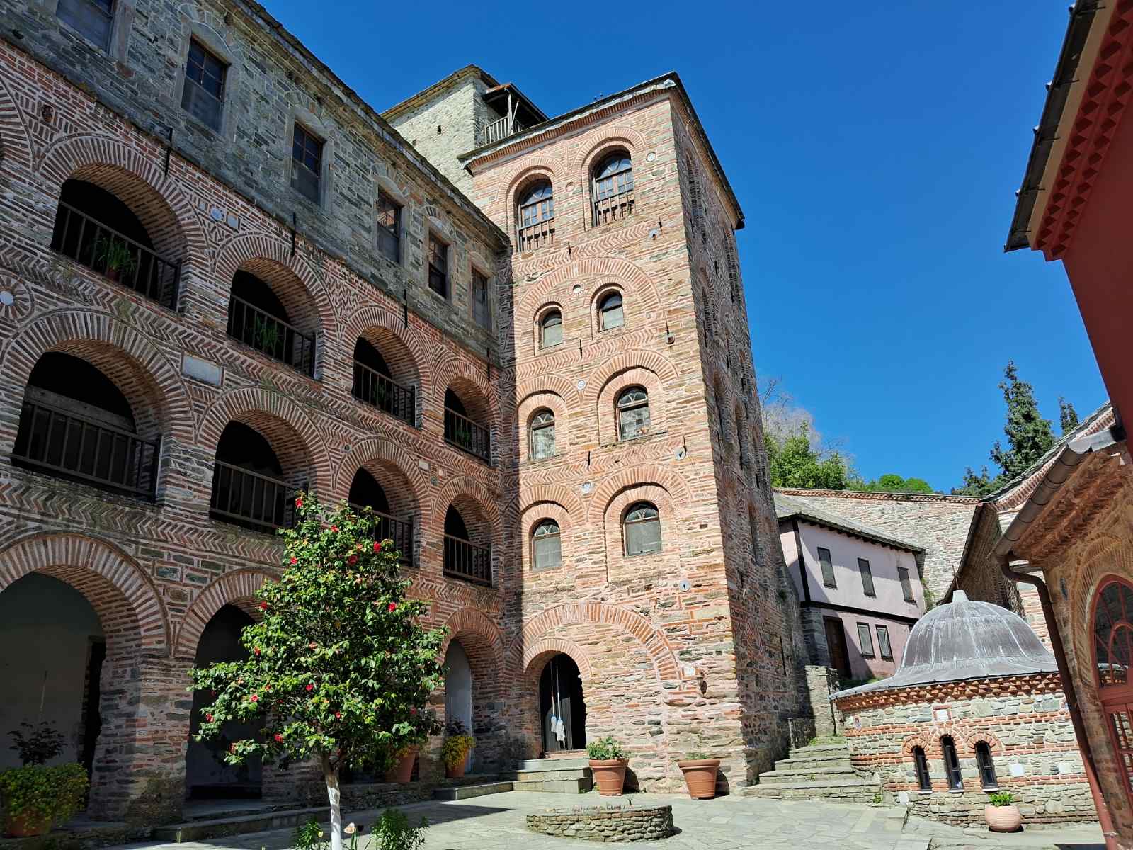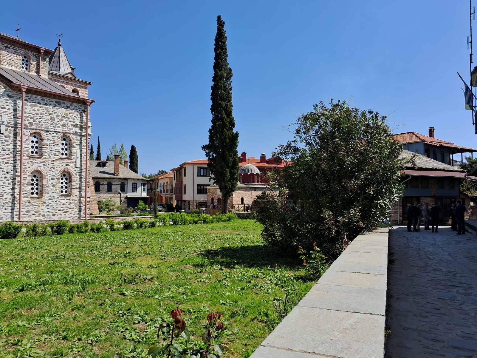 The Monastery of the Great Lavra is located on the SE side of the Athos peninsula at an altitude of 160 meters and a short distance from the sea.