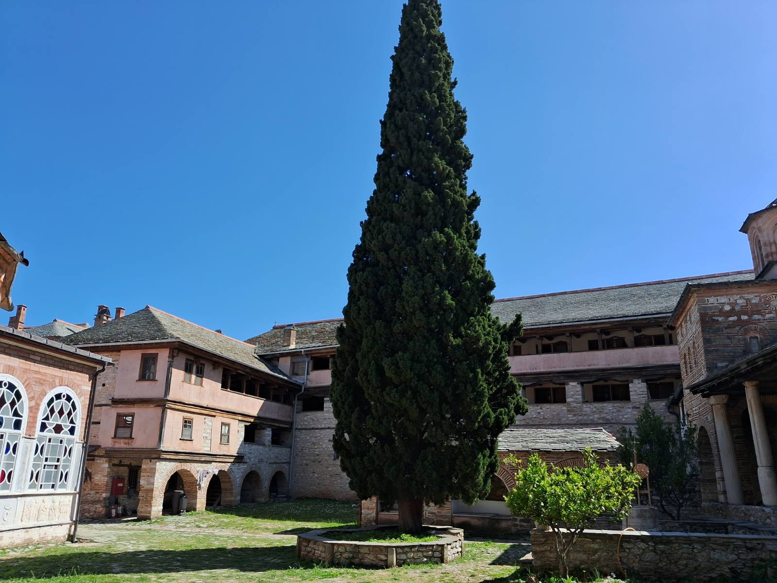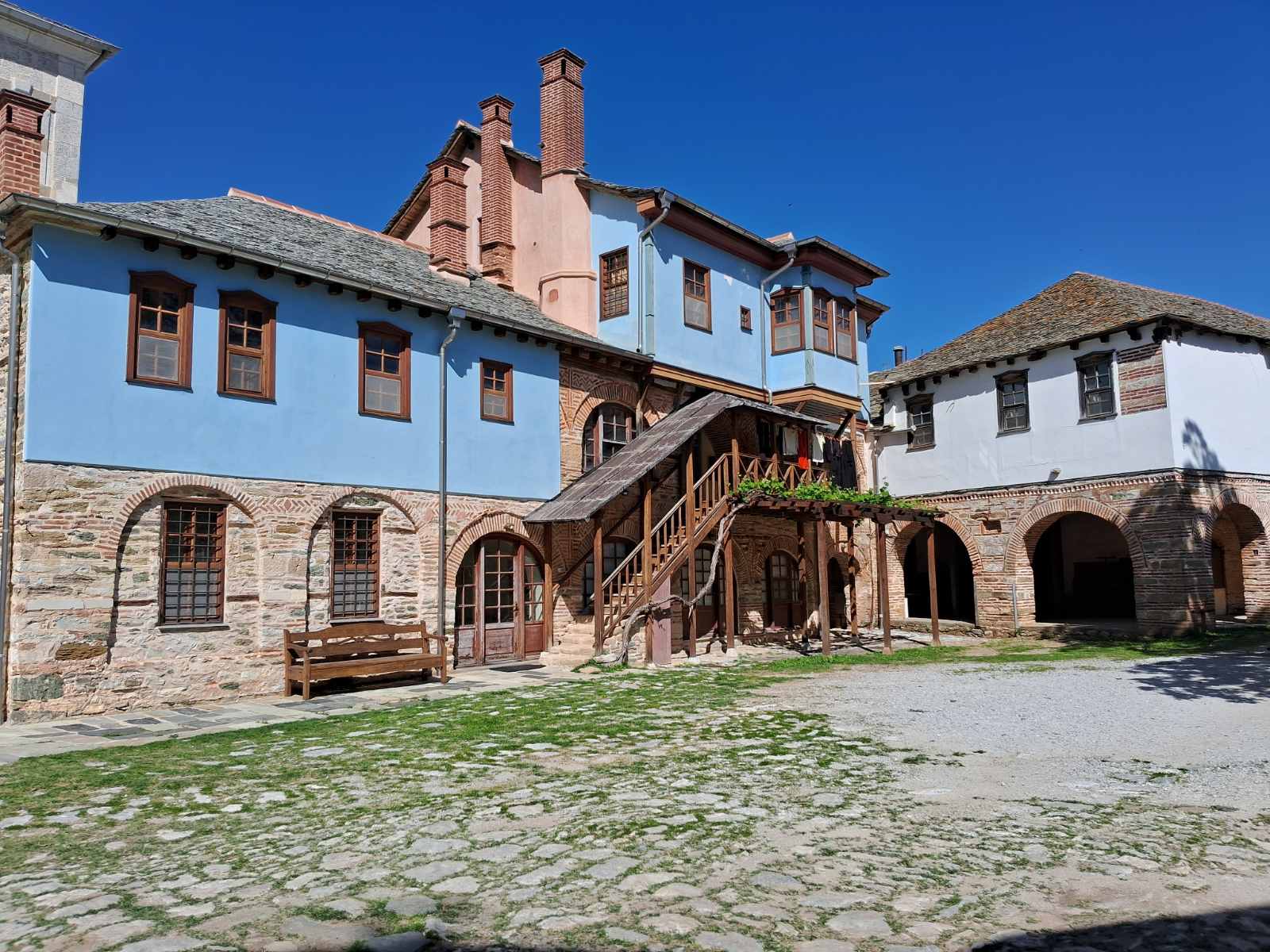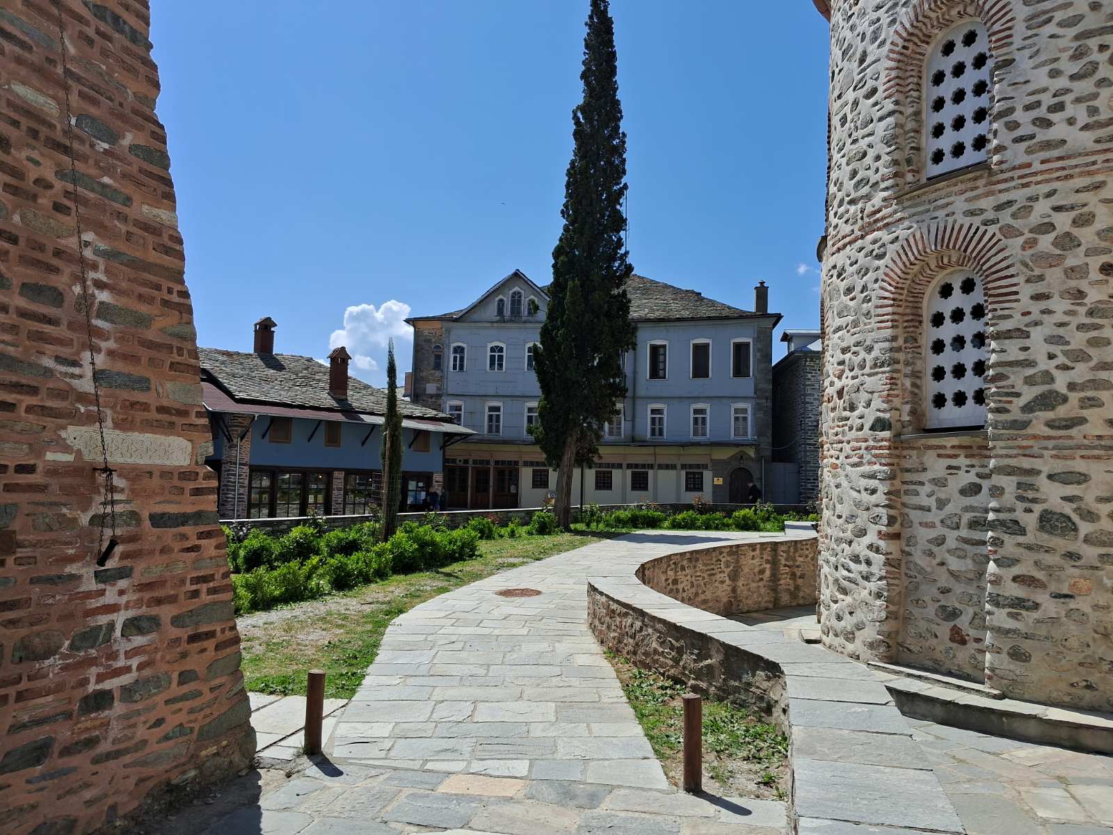 The Monastery of the Great Lavra is located on the SE side of the Athos peninsula at an altitude of 160 meters and a short distance from the sea.