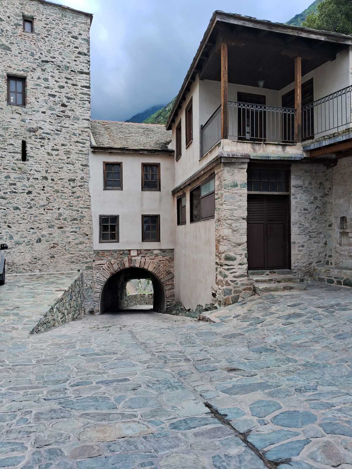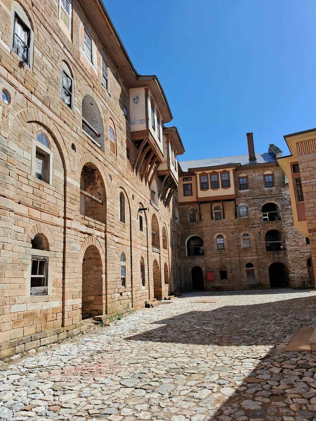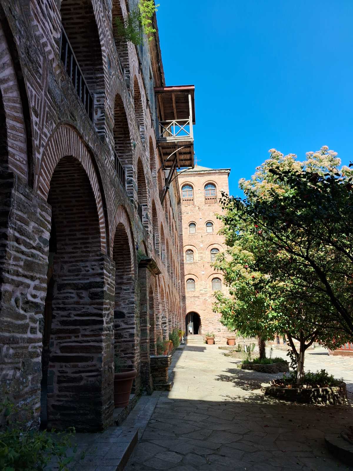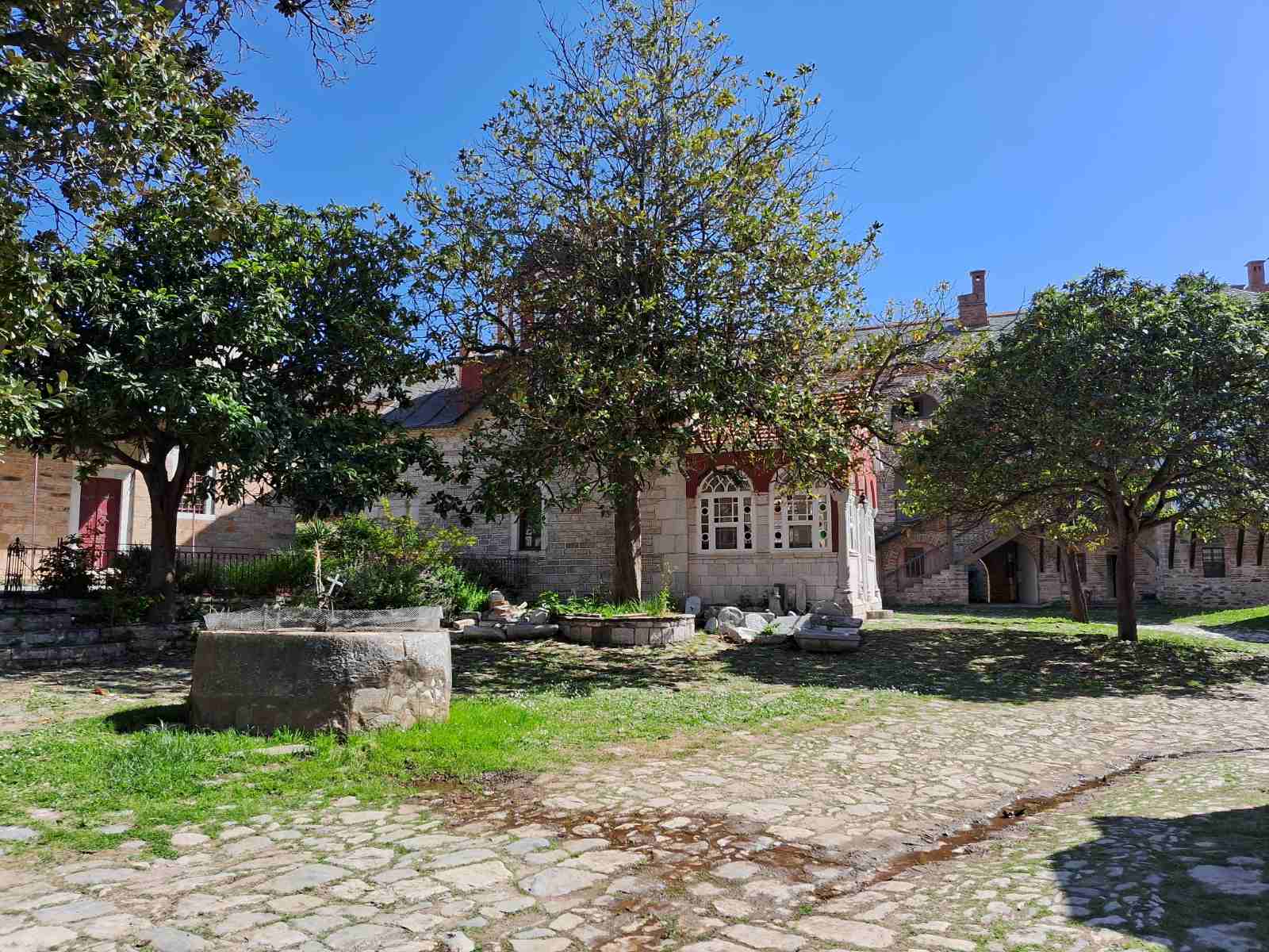 The Monastery of the Great Lavra is located on the SE side of the Athos peninsula at an altitude of 160 meters and a short distance from the sea.