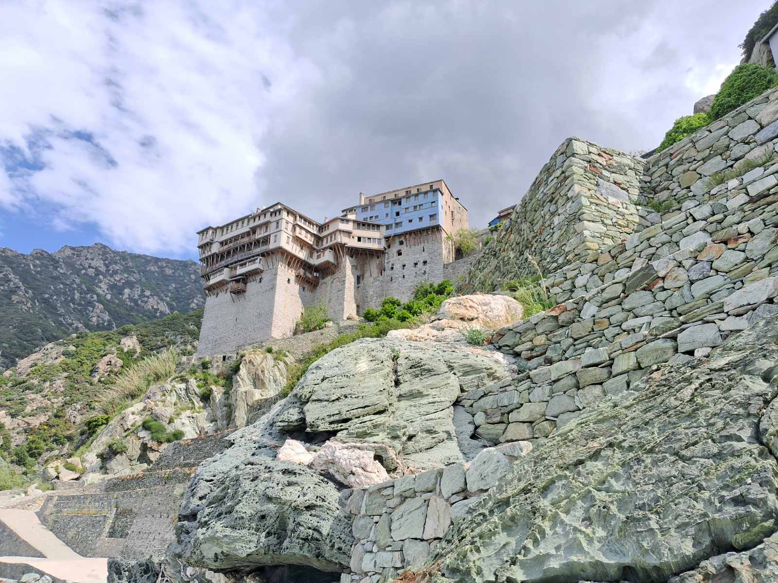 The Monastery of Simonos Petra is built on a steep rock on the SW side of the peninsula and is dedicated to the Nativity of Christ. The name of the Monastery comes from its founder, Saint Simon, who lived on Mount Athos in the 14th century AD.