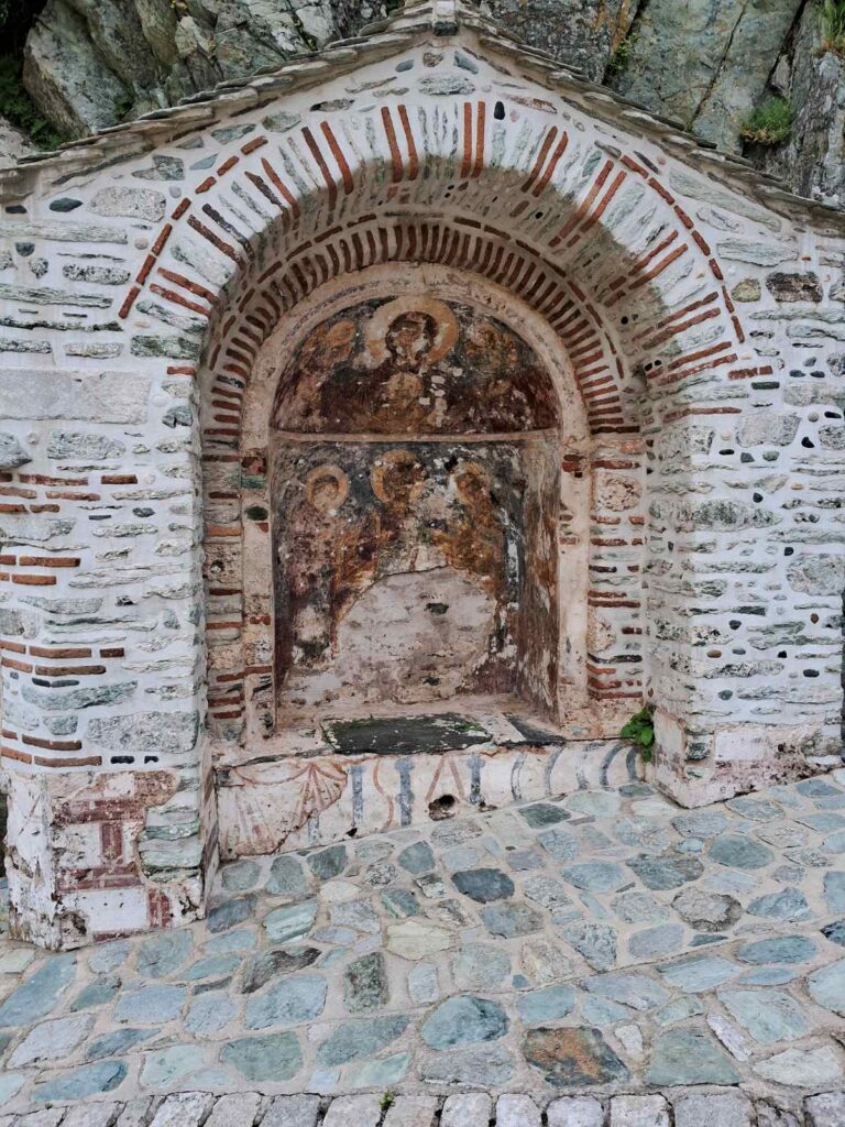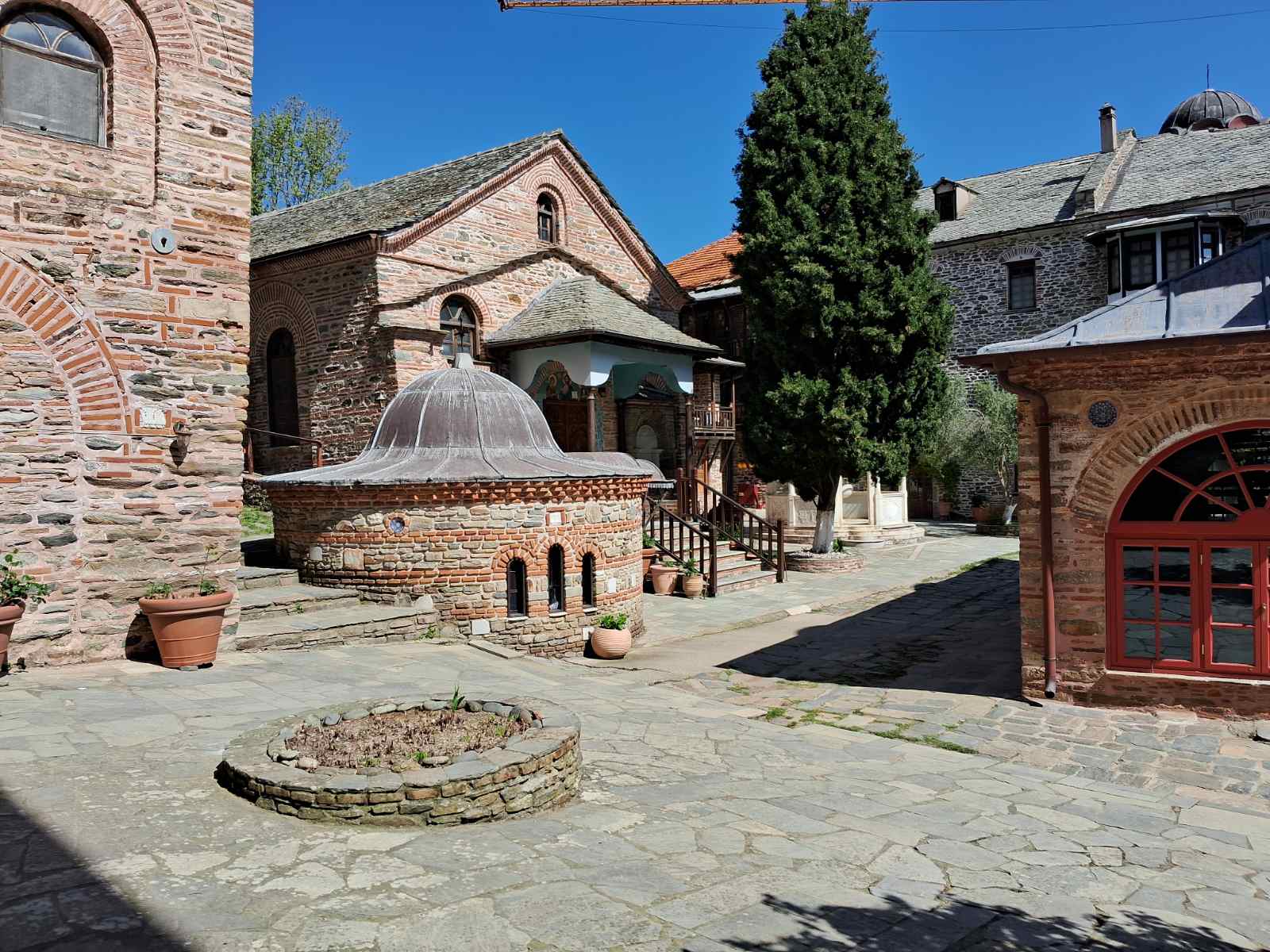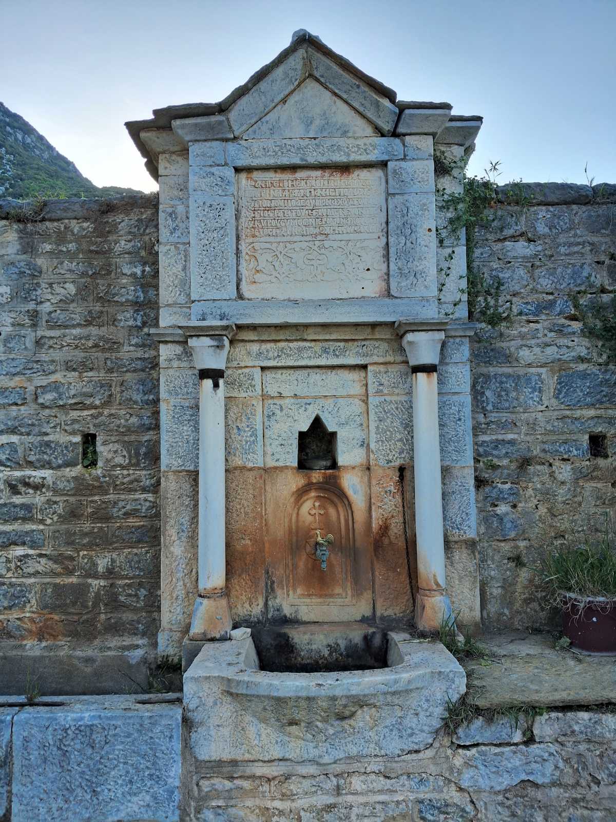 The phial is an 11th-century building and is located next to the cypress tree, which according to tradition was planted by Saint Athanasios himself.
