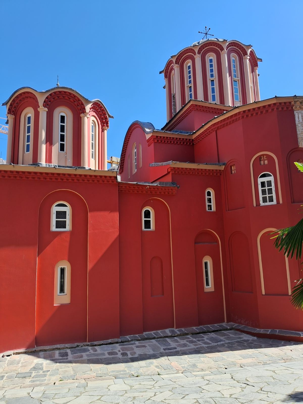The Kyriako of the Skete began to be built by Russian monks in 1842, which is one of the largest churches in the Balkans with a length of 60 meters and a width of 33 meters. The Athonian Academy is also housed in a building of the Skete.