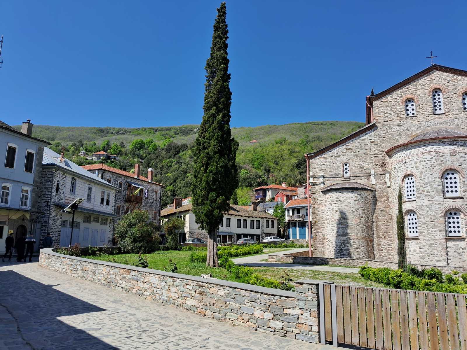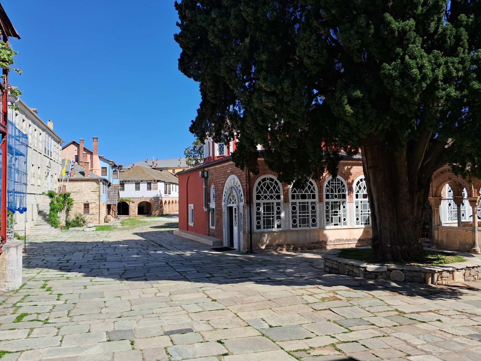 Karyes is the largest monastic settlement and the capital of Mount Athos. In the center of the settlement is the building of the Holy Community where the meetings of the representatives of the 20 Monasteries of Mount Athos are held.