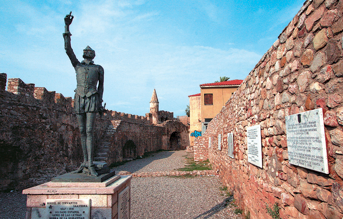 Την παρουσία του Θερβάντες στην ναυμαχία της Ναυπάκτου μας υπενθυμίζει το άγαλμα του συγγραφέα πάνω στον έναν από τους δύο πύργους στην είσοδο του λιμανιού της πόλης.