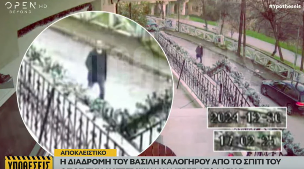 Στις φωτογραφίες που έχουν προκύψει από κάμερες ασφαλείας καταστημάτων, στις 30-12-24 φαίνεται ο Βασίλης Καλογήρου να βγαίνει από το σπίτι του στις 16:57 με την τελευταία καταγραφή στις 17:07, όπου από εκείνη τη στιγμή δεν υπάρχει άλλη καταγραφή του 39χρονου.