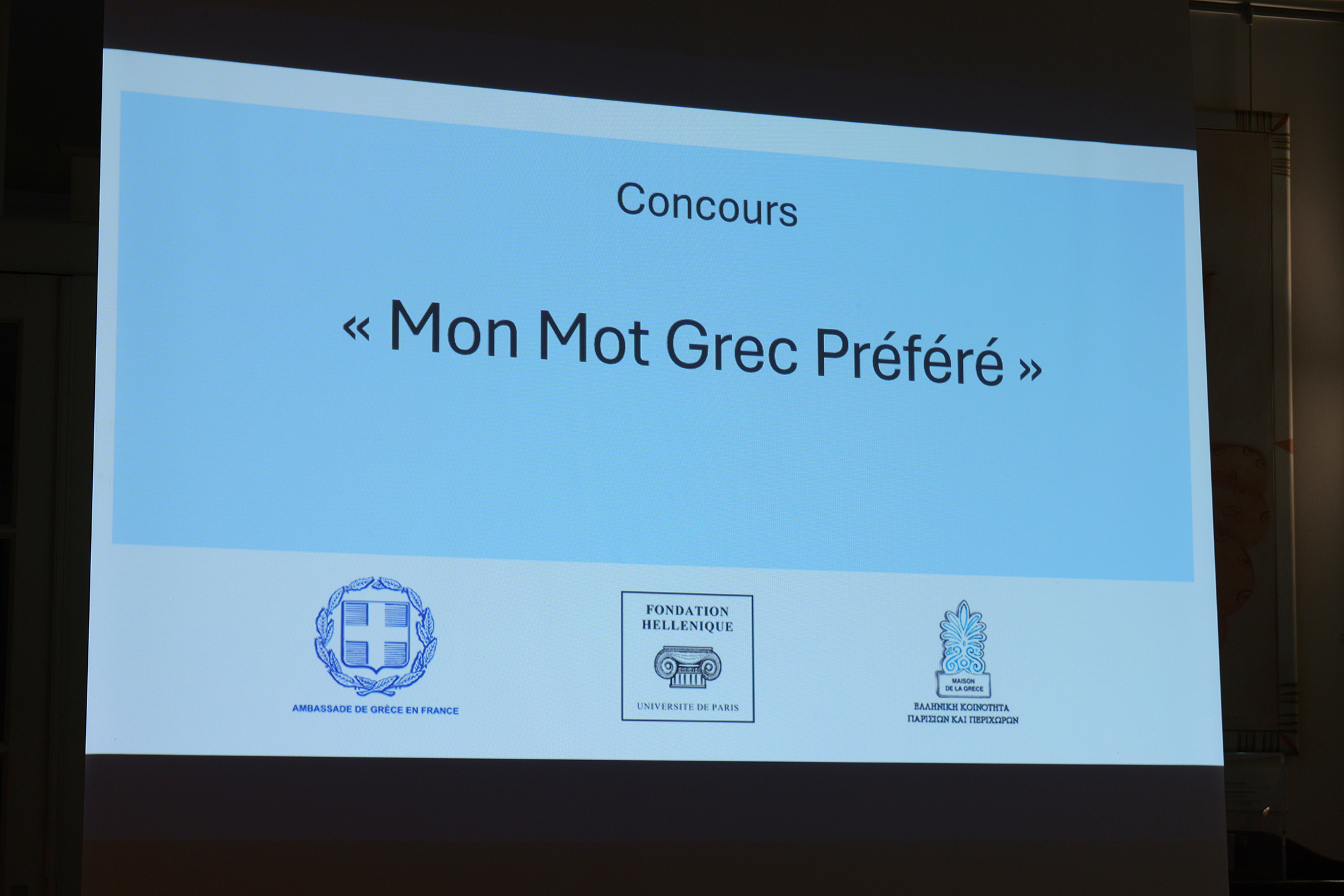 Το Ελληνικό ίδρυμα της Διεθνούς Πανεπιστημιούπολης του Παρισιού, από την πλευρά του, στο πλαίσιο της Παγκόσμιας Ημέρας Ελληνικής Γλώσσας, διοργάνωσε διαγωνισμό με τίτλο «Mon mot grec préféré» (σ.σ. Η αγαπημένη μου ελληνική λέξη). Κάλεσε τους φοιτητές που διαμένουν στη Cité Internationale – ανεξάρτητα από τη γλώσσα, την καταγωγή ή την επιστημονική τους ειδίκευση – να συντάξουν ένα σύντομο δοκίμιο για την «αγαπημένη τους ελληνική λέξη». Συμμετείχαν 49 φοιτητές, από ποικίλα επιστημονικά πεδία με εντυπωσιακή «συλλογή λέξεων» και δοκίμια εξαιρετικής ποιότητας.