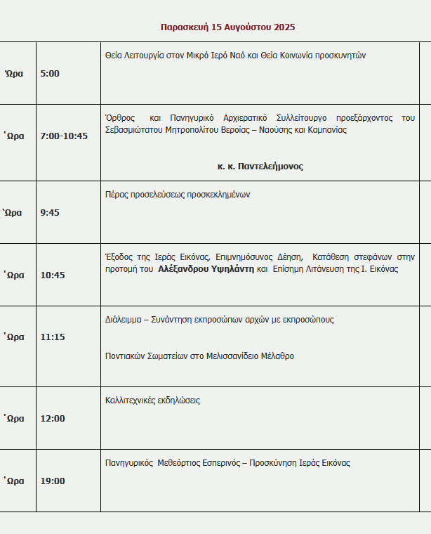 Έτσι, τα Δ.Σ του Προσκυνήματος και Σωματείου “ΠΑΝΑΓΙΑ ΣΟΥΜΕΛΑ”, οργανώνoυν την Πανήγυρη στις 14 και 15 Αυγούστου με πολλές εκδηλώσεις στα υψώματα του Βερμίου, παρουσία των εκπροσώπων της θρησκευτικής στρατιωτικής και πολιτικής ηγεσίας, των Ομοσπονδιών και Προέδρων των Ποντιακών Σωματείων, ιδίως δε της Ποντιακής Νεολαίας, καθώς και χιλιάδων πιστών απ΄ όλο τον κόσμο.