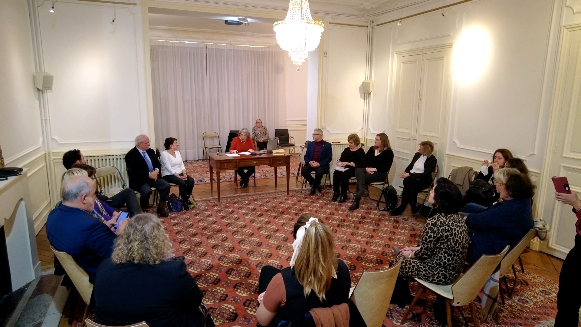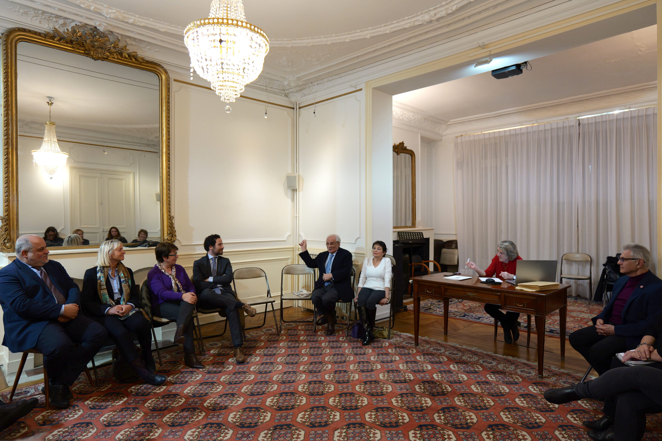 Στους εκπρόσωπους της επιτροπής ελληνογαλλικής φιλίας (amitié France – Grèce) της γαλλικής βουλής και γερουσίας, μοιράστηκαν κατάλογοι της χαρτογραφικής έκθεσης ” La Grèce: 1821-1921” που διοργανώθηκε για τη 200η επέτειο της Ελληνικής Επανάστασης 1821 και κατάλογοι της έκθεσης ”Ώσμωση” η οποία διοργανώθηκε το 2023 με την ευκαιρία του εορτασμού των 100 χρονών οργανωμένου Ελληνισμού στο Παρίσι και είχε ως θέμα την αλληλεπίδραση ανάμεσα στη γαλλική και ελληνική τέχνη και τη συνάντηση τους στον κοινό μας ευρωπαϊκό πολιτισμό.