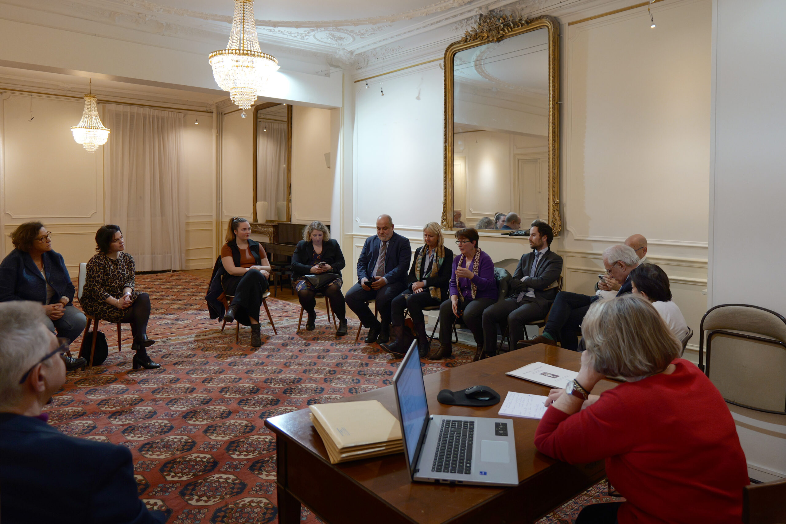 Την Τρίτη 2 Δεκεμβρίου το Διοικητικό Συμβούλιο της Ελληνικής κοινότητας Παρισιού και Περιχώρων είχε τη χαρά και την τιμή να υποδεχθεί στο Ελληνικό Σπίτι στο Παρίσι, πενταμελή επιτροπή που αποτελείτο από τους κ.κ. Μαριέττα Καραμανλή, Γαλλίδα πολιτικό, ελληνικής καταγωγής, βουλευτή του νομού Sarthe και πρόεδρο της επιτροπής της Ελληνο γαλλικής φιλίας της Βουλής, Hussein BOURGI γερουσιαστή του νομού Hérault, Françoise Dumont γερουσιαστή του νομού Var, Segolene Lachaume, διοικητική γραμματέα της επιτροπής ελληνογαλλικής φιλίας (amitié France – Grèce) της γερουσίας και François Marcelot διοικητικό γραμματέα της επιτροπής ελληνογαλλικής φιλίας (amitié France – Grèce) της γαλλικής βουλής.