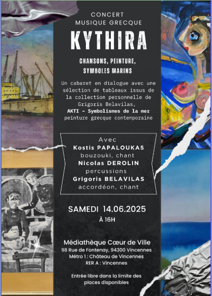 Η εκδήλωση θα πραγματοποιηθεί το Σάββατο 14 Ιουνίου 2025, στις 16:00, στη διεύθυνση: 98 Rue de Fontenay, 94300 Vincennes, κοντά στον σταθμό μετρό Château de Vincennes (γραμμή 1). Η είσοδος είναι δωρεάν. Περιορισμένος αριθμός θέσεων – εξασφαλίστε τη θέση σας εγκαίρως!