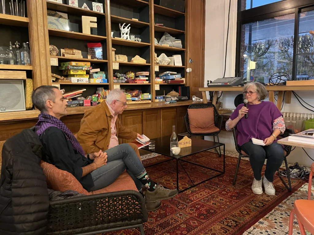 Χρήστος Χρυσόπουλος, Νίκος Γραικός, Anne-Laure Brisac, στην παρουσίαση του βιβλίου «Maison Alma» στο Παρίσι