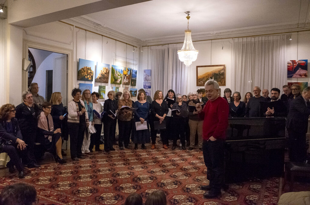 M. Prantzos a commencé son allocution en remerciant l’ambassadeur sortant M. Antonis Alexandridis et le secrétaire général du Consulat M. Giorgos Kontos pour avoir accueilli l’événement à la Maison de la Grèce. Il a chaleureusement salué la chorale « Harmonie » (Chorale Harmonie), membre du DIKTYO, qui a illuminé la soirée de magnifiques mélodies et chansons grecques, accompagnées au piano par son directeur M. Yiannis Plastiras.