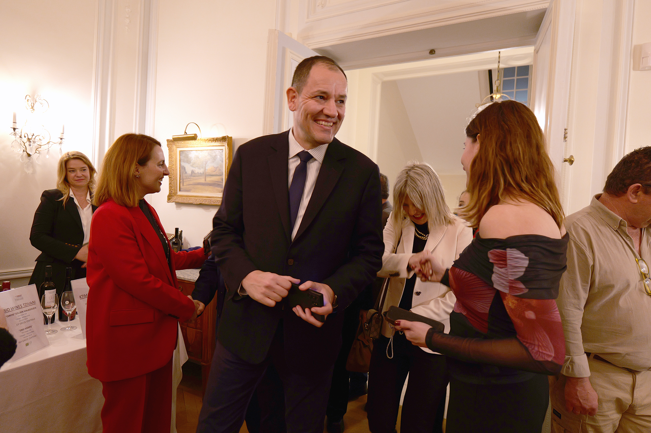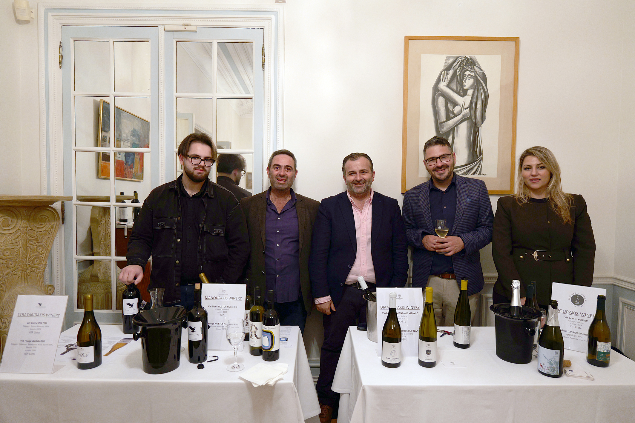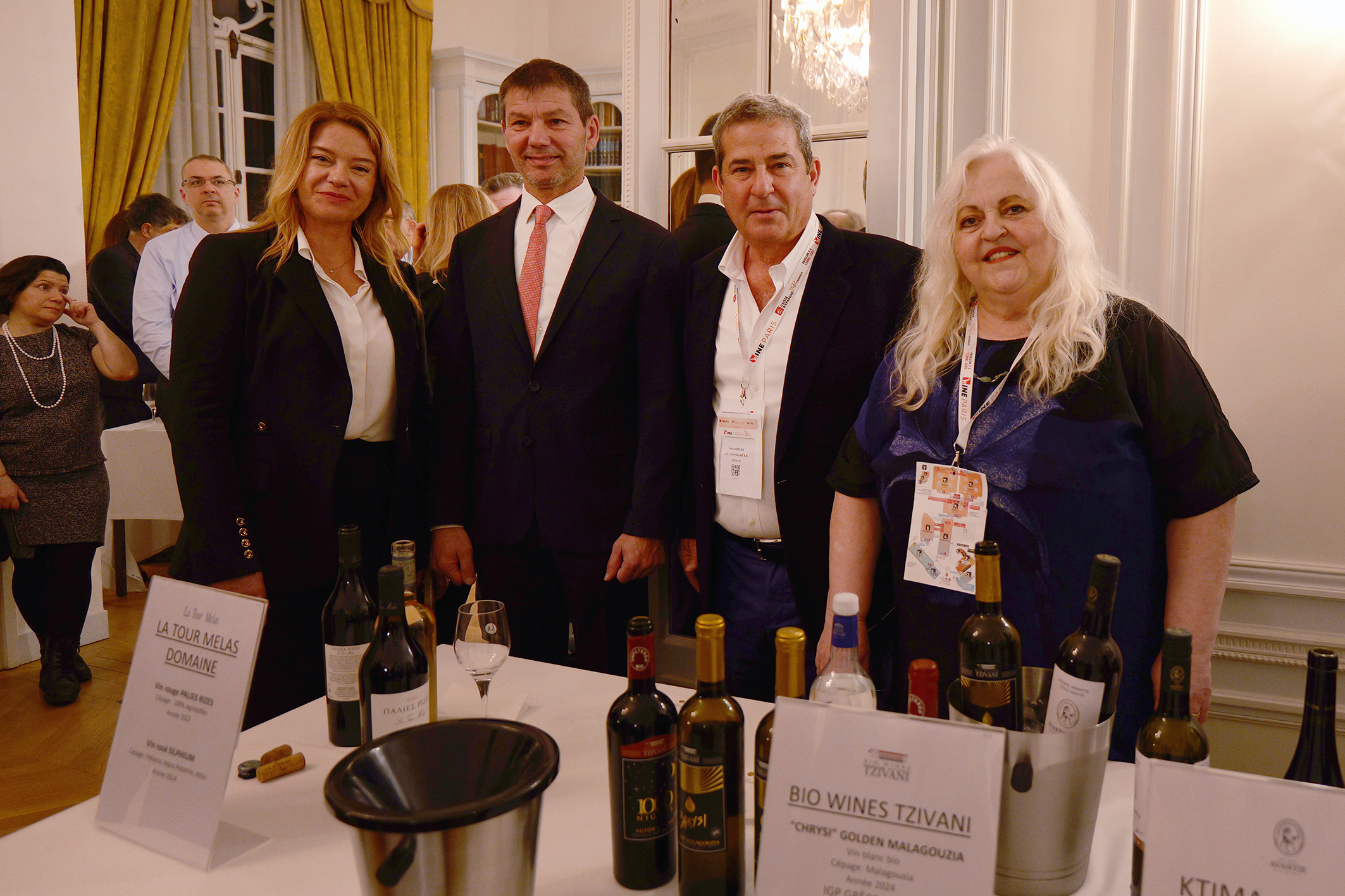 Την εκδήλωση χαιρέτισε η Επιτετραμμένη της Ελληνικής Πρεσβείας στο Παρίσι, Πρέσβυς κα Αλεξάνδρα Μαντζίλα και η Προϊσταμένη του Γραφείου Οικονομικών και Εμπορικών Υποθέσεων στο Παρίσι και Σύμβουλος Οικονομικών και Εμπορικών Υποθέσεων κα Ανδρονίκη Λιακοπούλου, ενώ ομιλίες πραγματοποίησαν η Πρόεδρος της ΕΔΟΑΟ (Εθνικής Διεπαγγελματικής Οργάνωσης Αμπέλου και Οίνου) κα Κωνσταντίνα Σπυροπούλου και ο Πρόεδρος του Πανελλήνιου Συνδέσμου Εξαγωγέων (ΠΣΕ) & Συνδέσμου Εξαγωγέων Κρήτης (ΣΕΚ) κ. Αλκιβιάδης Καλαμπόκης.
