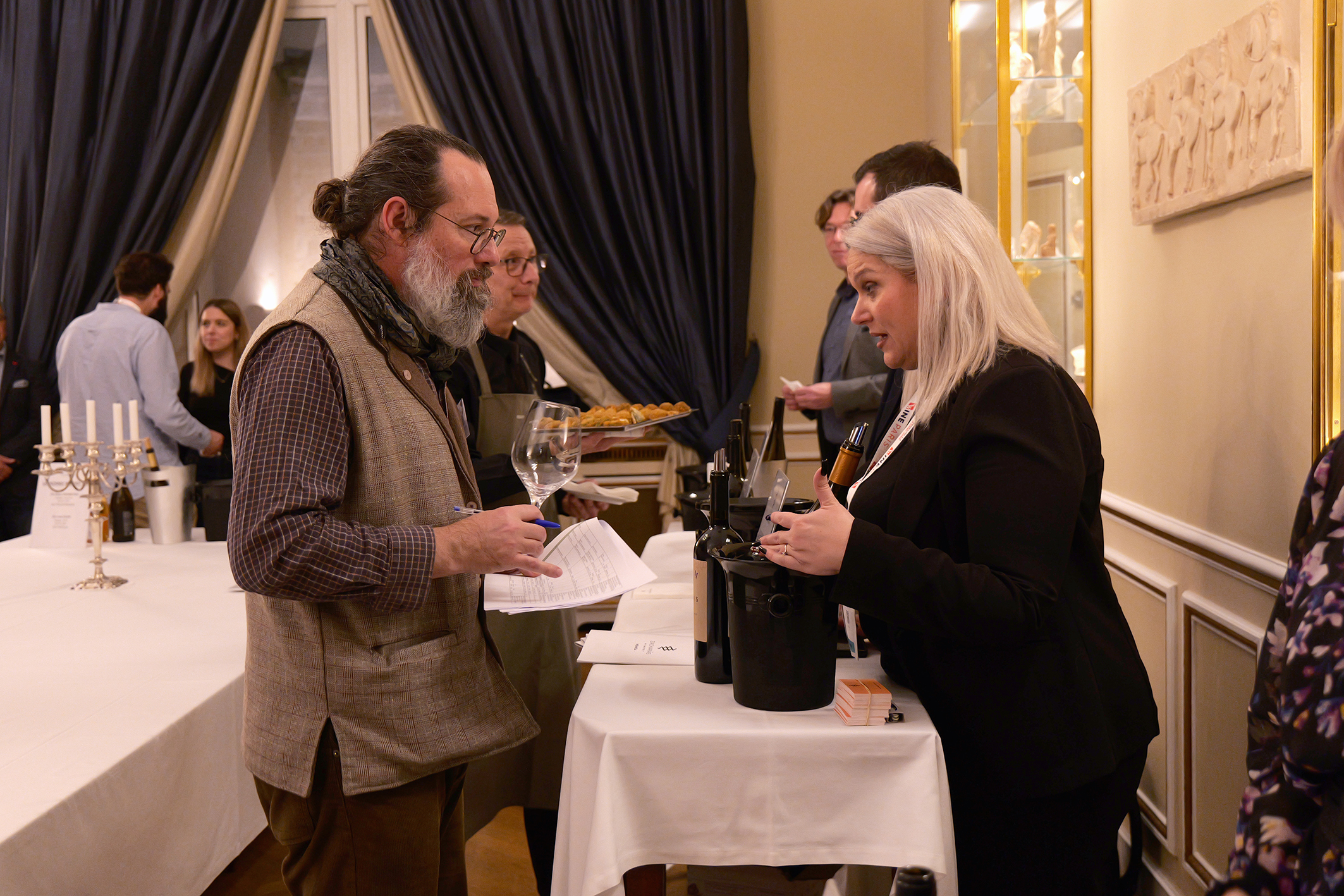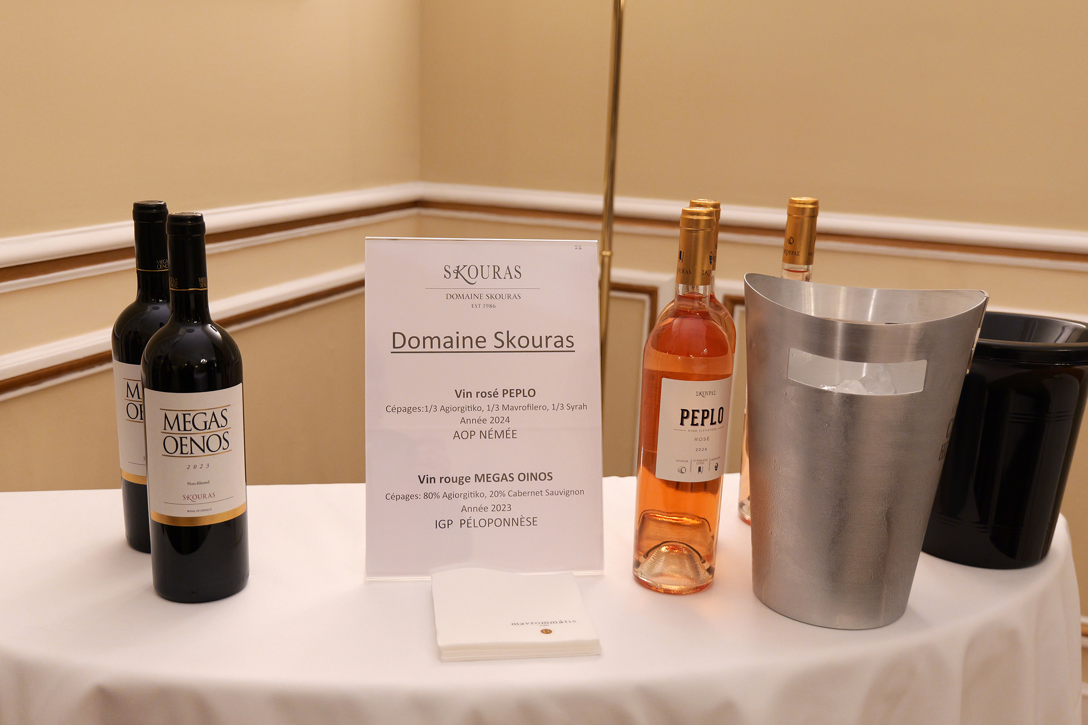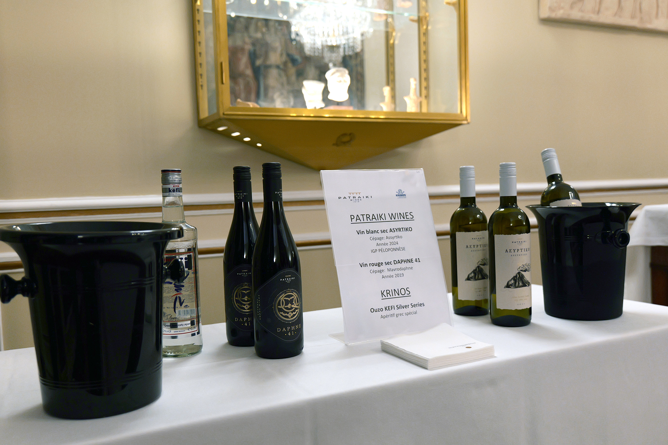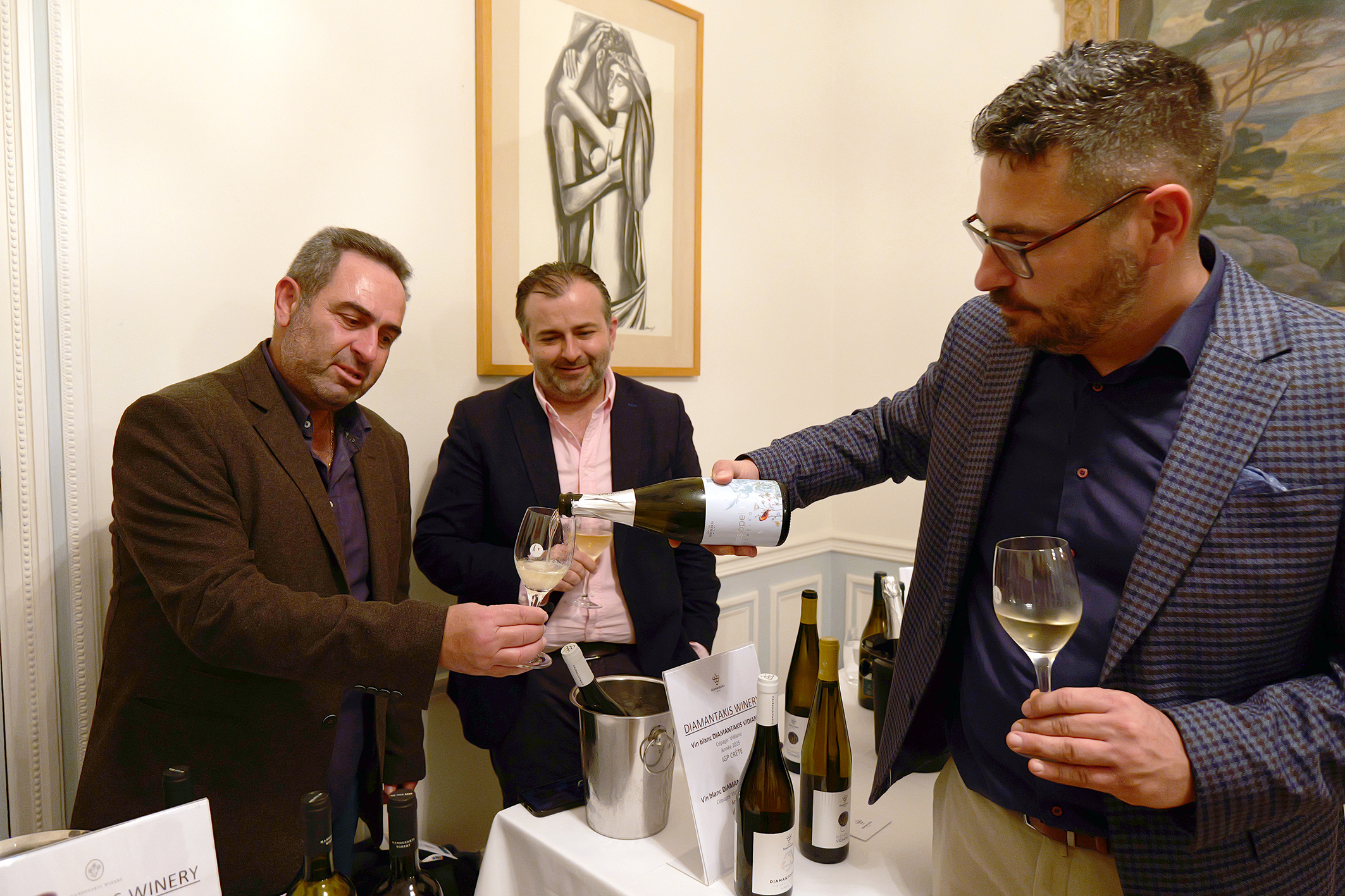 Την εκδήλωση χαιρέτισε η Επιτετραμμένη της Ελληνικής Πρεσβείας στο Παρίσι, Πρέσβυς κα Αλεξάνδρα Μαντζίλα και η Προϊσταμένη του Γραφείου Οικονομικών και Εμπορικών Υποθέσεων στο Παρίσι και Σύμβουλος Οικονομικών και Εμπορικών Υποθέσεων κα Ανδρονίκη Λιακοπούλου, ενώ ομιλίες πραγματοποίησαν η Πρόεδρος της ΕΔΟΑΟ (Εθνικής Διεπαγγελματικής Οργάνωσης Αμπέλου και Οίνου) κα Κωνσταντίνα Σπυροπούλου και ο Πρόεδρος του Πανελλήνιου Συνδέσμου Εξαγωγέων (ΠΣΕ) & Συνδέσμου Εξαγωγέων Κρήτης (ΣΕΚ) κ. Αλκιβιάδης Καλαμπόκης.