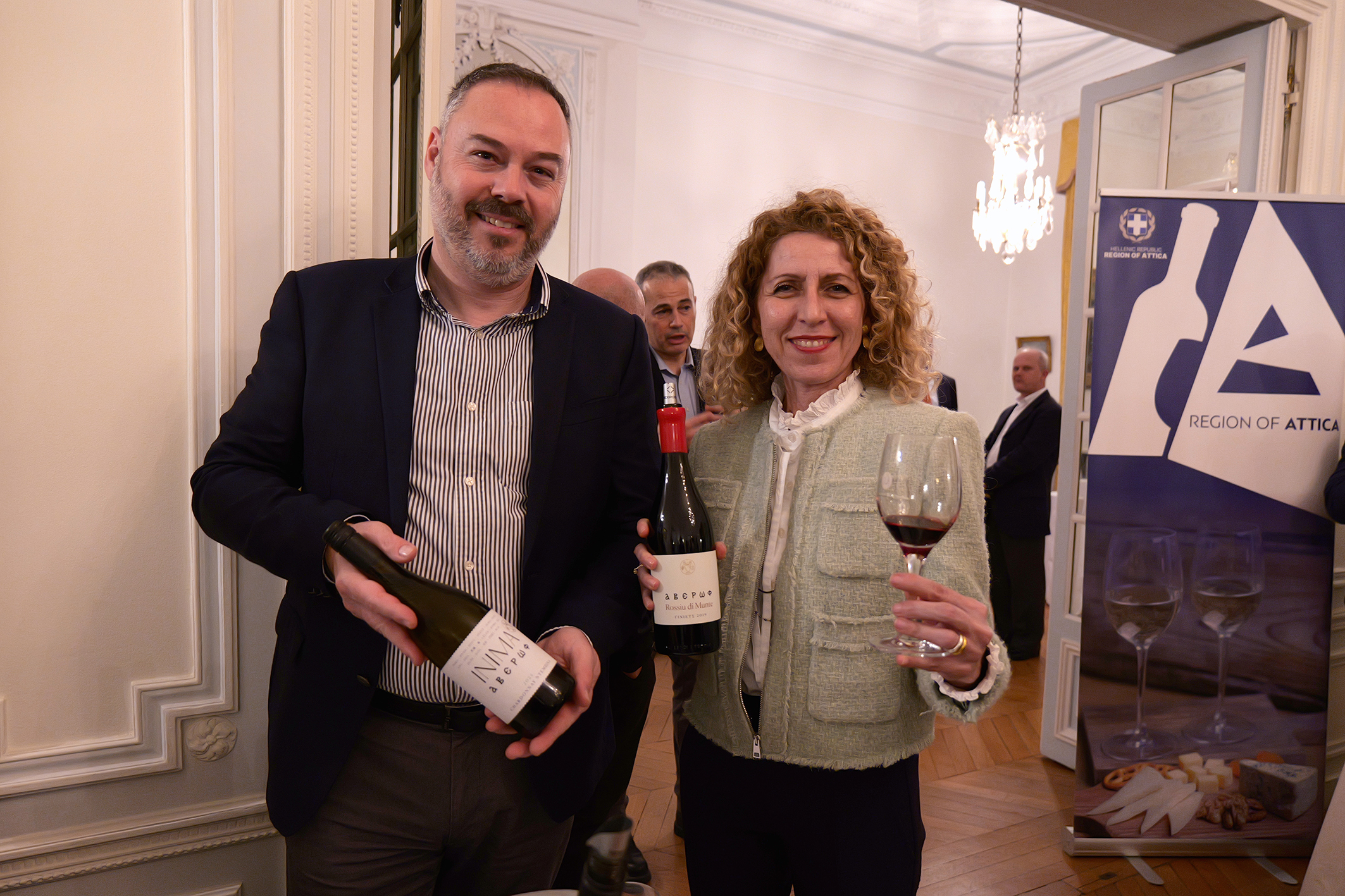 Στην εκδήλωση παρευρέθηκαν, μεταξύ άλλων, η Εντεταλμένη Σύμβουλος Αγροτικής Οικονομίας και Κτηνιατρικής της Περιφέρειας Αττικής κα Δήμητρα Αγγελάκη, ο Θεματικός Αντιπεριφερειάρχης Θεσσαλίας Κοινωνικής Πολιτικής και Οικογένειας κ. Χρήστος Γκουρομπίνος, ο Αντιπεριφερειάρχης Επιχειρηματικότητας, Έρευνας και Καινοτομίας της Περιφέρειας Δυτ. Ελλάδος κ. Παναγιώτης Παπαδόπουλος, η Διευθύντρια του Ελληνο-γαλλικού Επιμελητηρίου κα Κατερίνα Μανάλη, εκπρόσωποι Περιφερειών και οινοποιείων από όλη τη χώρα, θεσμικοί φορείς, Έλληνες οινοπαραγωγοί και διεθνείς αγοραστές και επαγγελματίες του κλάδου.