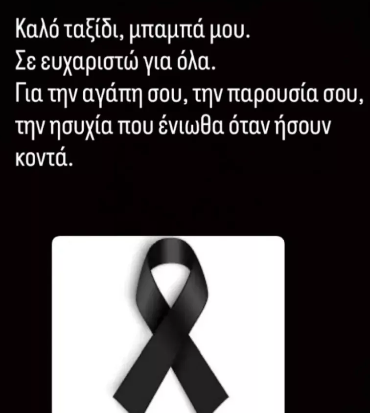 «Καλό ταξίδι μπαμπά μου. Σε ευχαριστώ για όλα. Για την αγάπη σου, την παρουσία σου, την ησυχία που ένιωθα όταν ήσουν κοντά».