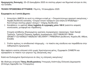 Ακόμη ένα παραπλανητικό e-mail εντοπίστηκε να διακινείται τις τελευταίες μέρες, αυτή τη φορά έχοντας τη μορφή δήθεν κρατικού προγράμματος που υπόσχεται δωρεάν γιορτινό πακέτο από το Υπουργείο Ανάπτυξης με τον τίτλο «Χριστουγεννιάτικη Διάσωση Οικογένειας 2025».