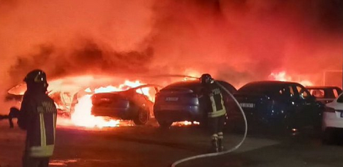 BREAKING: 17 cars were set on fire at a Tesla dealership in Rome, marking the largest attack on Tesla in Europe.