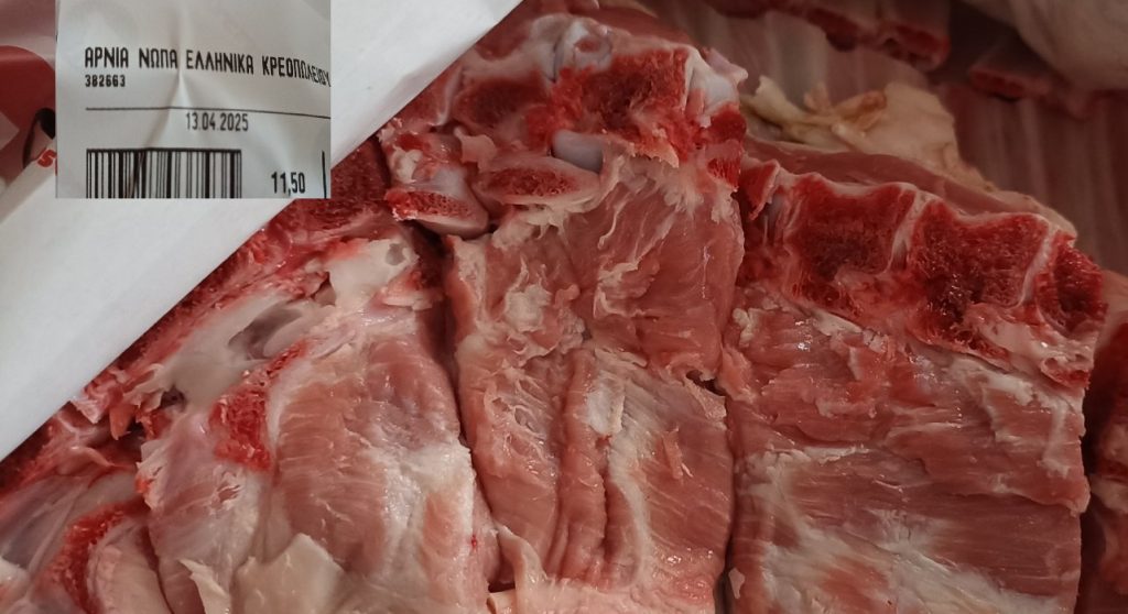 Σε άλλη μεγάλη αλυσίδα σούπερ μάρκετ σε τυποποιημένη συσκευασία, οι τιμές σε κατσίκι/αρνί είναι: