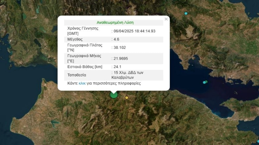 Σύμφωνα με την αυτόματη λύση του Γεωδυναμικού Ινστιτούτου του Εθνικού Αστεροσκοπείου Αθηνών, ο σεισμός είχε μέγεθος 4,6 βαθμών της κλίμακας Ρίχτερ και το επίκεντρο εντοπίστηκε 15 χιλιόμετρα δυτικά βορειοδυτικά των Καλαβρύτων.