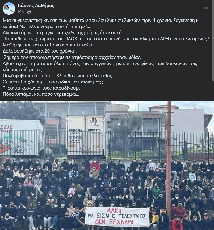 “Μια συγκλονιστική κίνηση των μαθητών του 2ου λυκείου Συκεών πριν 4 χρόνια. Συγκίνηση κι ελπίδα! Να τελειώνουμε μ αυτή την τρέλα..