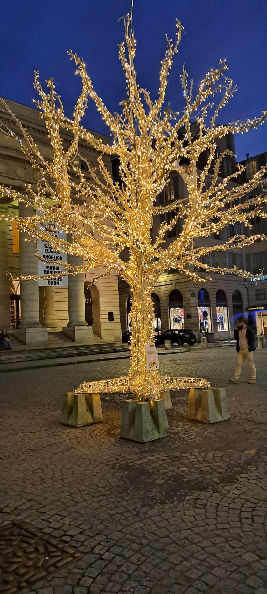 Τα δέντρα στην Place Vendôme λάμπουν επιβλητικά, ενώ στην Galerie Lafayette το καθιερωμένο δέντρο κάτω από τον θόλο κόβει την ανάσα με τους παιχνιδιάρικους τόνους του σε βαθύ κόκκινο που αντανακλά σε όλο το κτήριο.