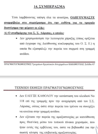 Σύμφωνα με την έκθεση, ευθύνες για την τραγωδία στα Τέμπη, φέρουν οι εξής: