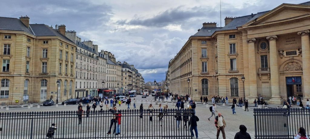 Across from the Pantheon you can see the imposing buildings that house the city hall of the fifth arrondissement and the famous law school of the Sorbonne University.