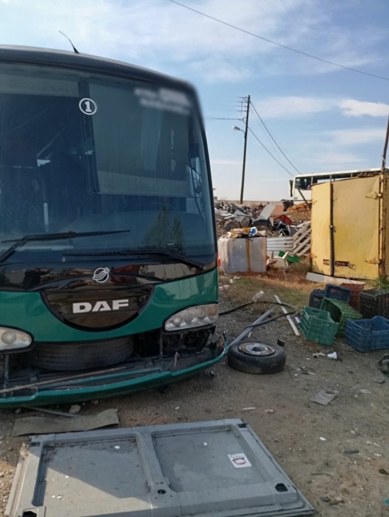 Στον ίδιο χώρο εντοπίσθηκαν δύο ακόμη τουριστικά λεωφορεία, στα οποία είχαν προβεί σε προγενέστερο χρόνο στην αποσυναρμολόγηση μηχανικών εξαρτημάτων και μεταλλικών μερών τους.