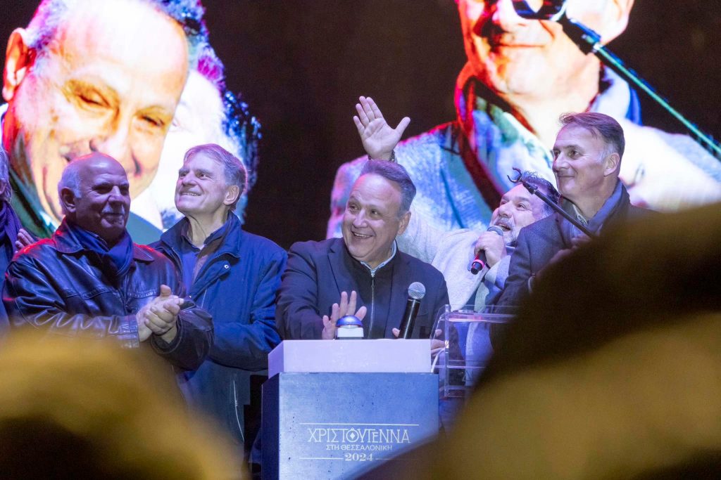 «Η Θεσσαλονίκη είναι εδώ, είναι μια, στην καλύτερη πλατεία της Ελλάδας», τόνισε ο δήμαρχος και έδωσε τις ευχές του για τα Χριστούγεννα.