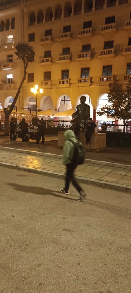 Groups of teenagers, families with children, elderly people, locals and tourists, defying tonight’s cold air of Vardaris, bring life downtown.