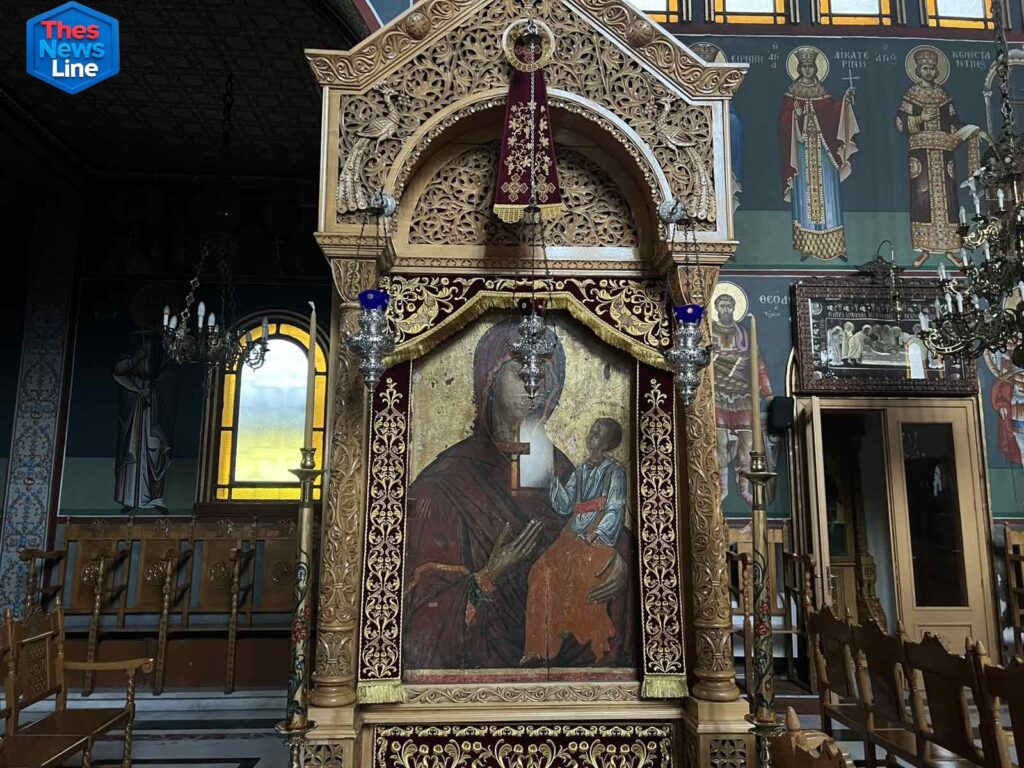 Η ιερή εικόνα της Παναγίας Πάντα Ελπίς δεσπόζει στο κέντρο του ναού. Πρόκειται για ένα ιερό θρησκευτικό και ιστορικό κειμήλιο το οποίο αγιογραφήθηκε σε εργαστήριο της Κωνσταντινούπολης και χρονολογείται περίπου στις αρχές του 14ου αιώνα.