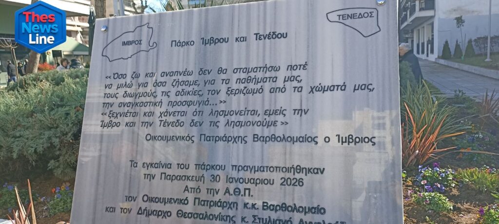 Σε κλίμα βαθιάς συγκίνησης ολοκληρώθηκε η ονοματοδοσία και τα εγκαίνια του πάρκου στην οδό Μητροπούλου υπό τον Οικουμενικό Πατριάρχη Βαρθολομαίο και τον Δήμαρχο Θεσσαλονίκης Στέλιο Αγγελούδη, το μεσημέρι της Παρασκευής (30/01).