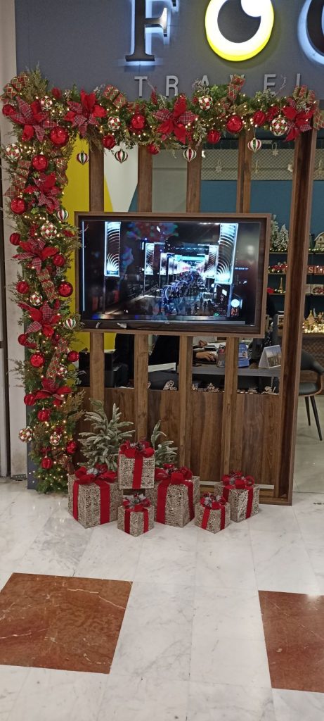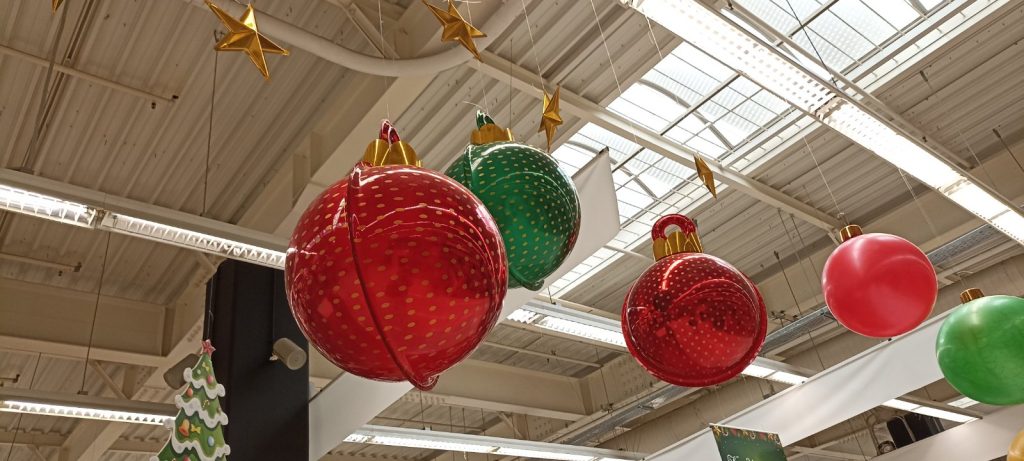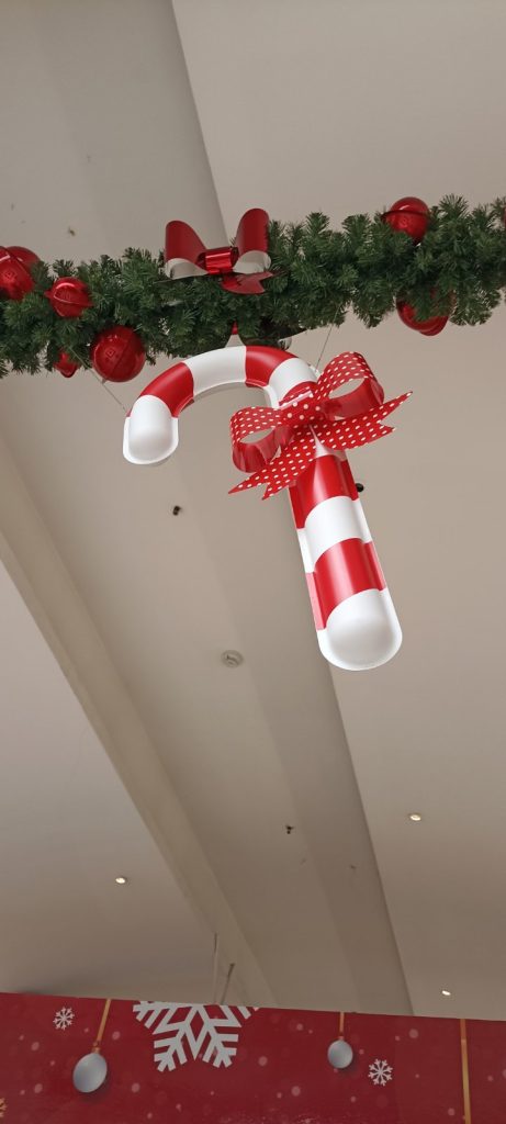 Entering the Mall the Christmas decoration was way more satisfying. Green garlands hanging from the celling with big red bows, candies and christmas balls.