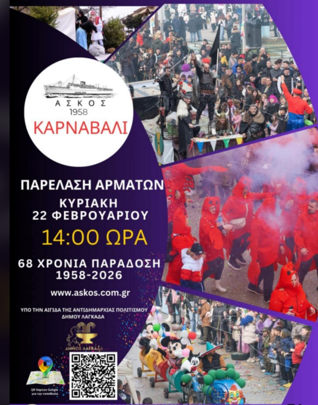 - Το Σάββατο 21/02/2026 και ώρα 17:00 στην αίθουσα της κοινότητας Ασκού θα διοργανωθεί μασκέ πάρτι με παρουσία ανιματέρ για τους μικρούς φίλους.