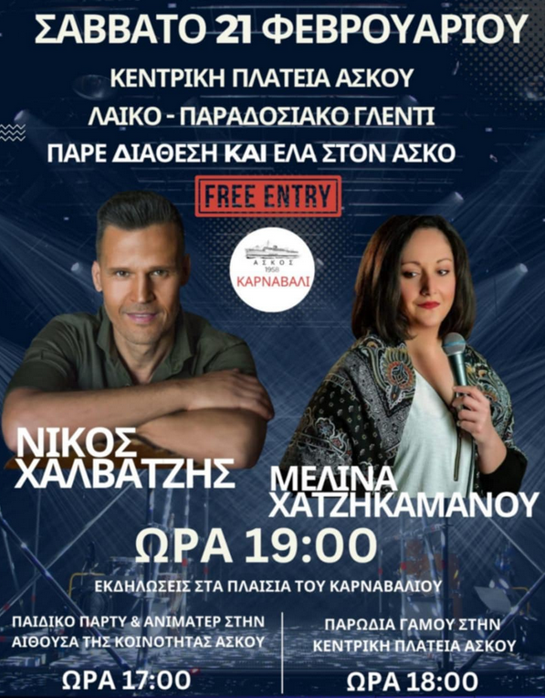 - Οι εκδηλώσεις θα ξεκινήσουν την Παρασκευή 20/02/2026 και ώρα 19:00 στην αίθουσα της κοινότητας Ασκού με BBQ, δωρεάν κρασί και ζωντανή μουσική με τους μουσικούς Νικηφόρο Ατζεμή και Ηλία Λεονταράκη.