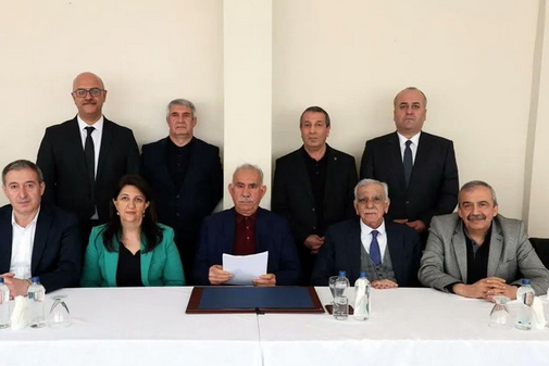 Το μήνυμα του Οτσαλάν διάβασαν σε συνέντευξη από την Κωνσταντινούπολη μέλη αντιπροσωπείας του φιλοκουρδικού Κόμματος DEM.