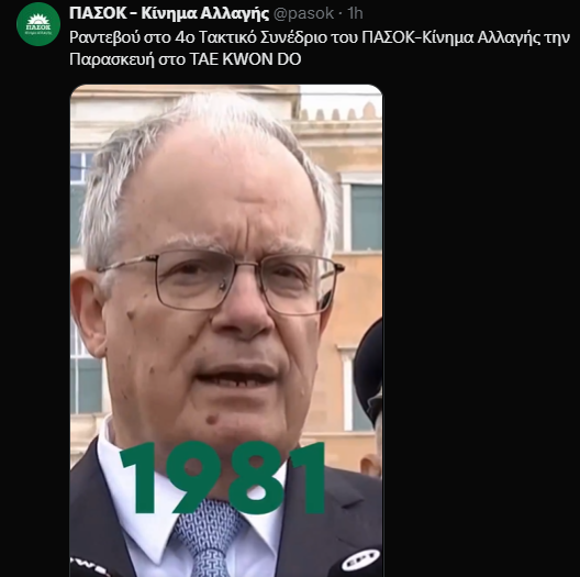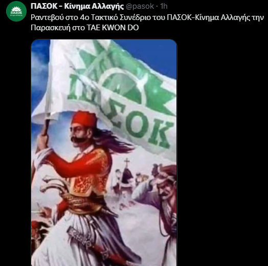 Στην πλατφόρμα Χ, το ΠΑΣΟΚ ανέβασε βίντεο με το σαρδάμ του ΠτΔ, μεταφέροντας την επανάσταση και τους ήρωες του 1821 στη εποχή του Ανδρέα Παπανδρέου, υπενθυμίζοντας μάλιστα το Συνέδριο του κόμματος!