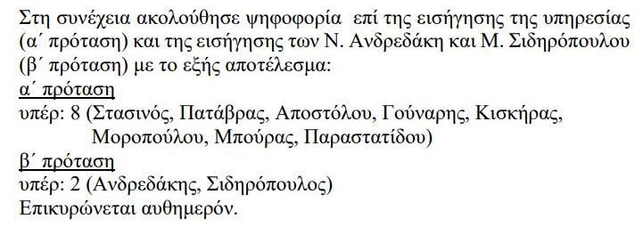 “Με αφορμή τις διαρροές από κύκλους του ΠΑΣΟΚ στα ΜΜΕ ότι η απόφαση του ΤΕΕ για τη σύμβαση του 1.550.000 με την V&O ήταν ομόφωνη, θέλουμε να ενημερώσουμε επίσημα και υπεύθυνα ότι οι συνεδριάσεις που αφορούν τη συγκεκριμένη σύμβαση είναι τέσσερις και όχι μία!