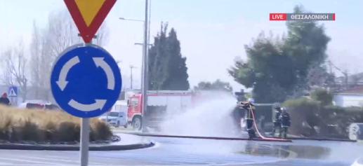 Κλιμάκια της Πυροσβεστική βρίσκονται στο σημείο, στον Κόμβο της Θέρμης.