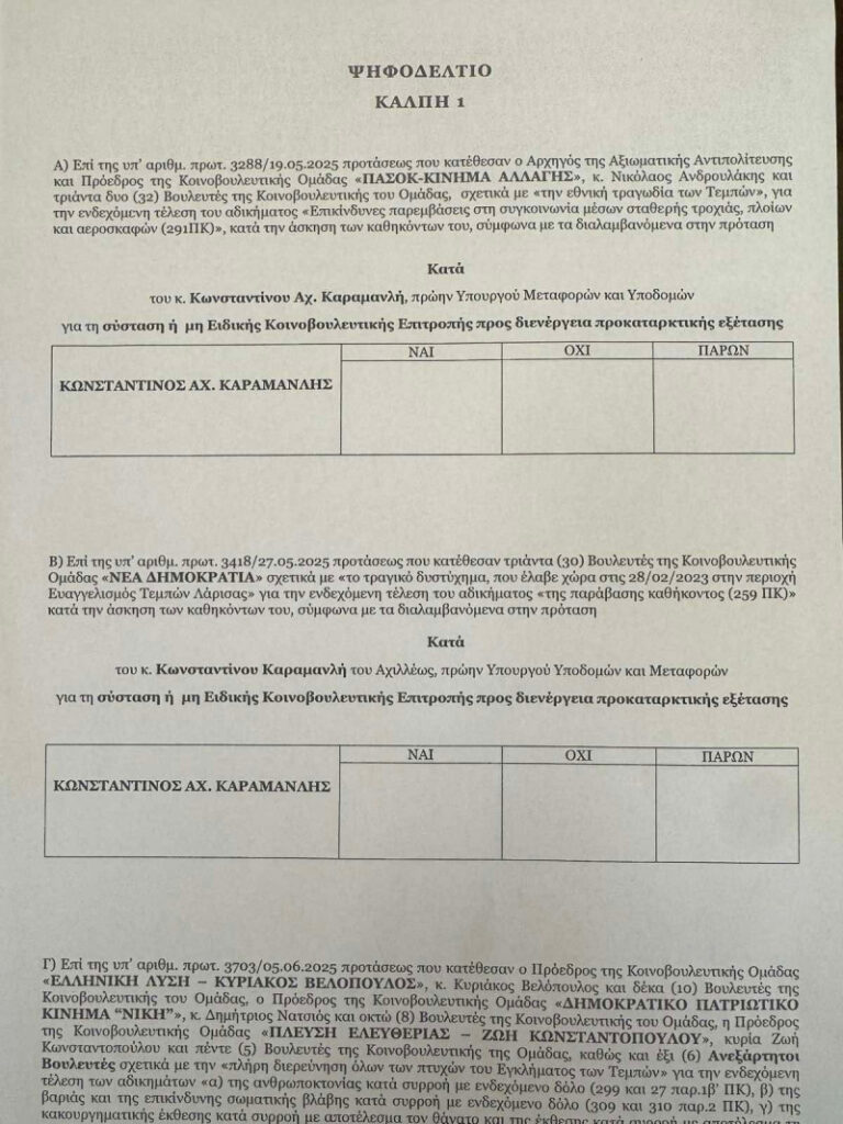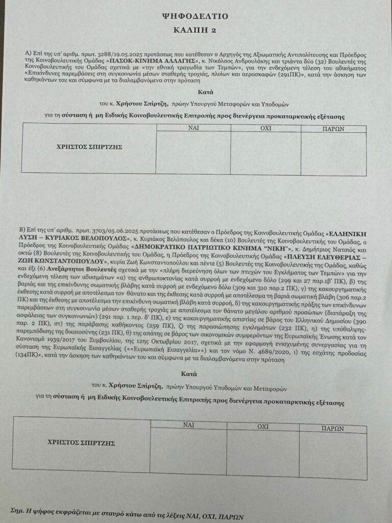 Την Τετάρτη 18 Ιουνίου θα διεξαχθεί η συζήτηση και ψήφιση στην Ολομέλεια της Βουλής, επί των τριών προτάσεων, για τη σύσταση Προανακριτικής Επιτροπής για την τραγωδία στα Τέμπη.