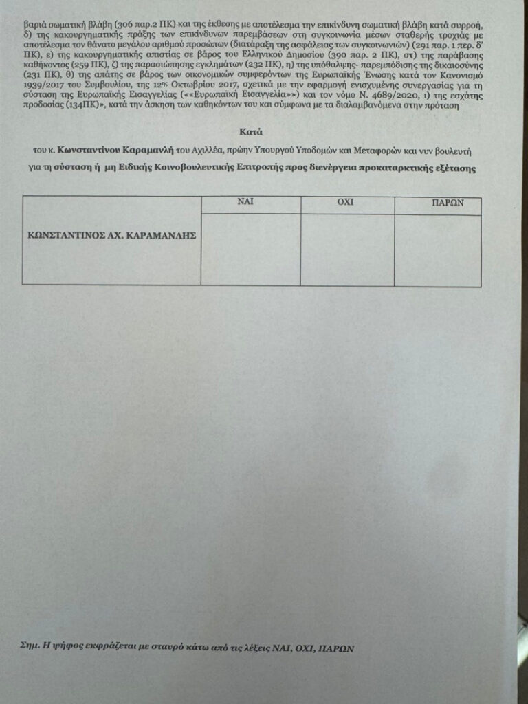 Σημειώνεται πως ο Πρωθυπουργός Κυριάκος Μητσοτάκης θα μιλήσει στη Βουλή, κατά τη διάρκεια της συζήτησης για τη σύσταση Ειδικής Κοινοβουλευτικής Επιτροπής προς διενέργεια προκαταρκτικής εξέτασης, σύμφωνα με το άρθρο 86 παρ. 3 του Συντάγματος, τα άρθρα 153 επ. του Κανονισμού της Βουλής και το άρθρο 5 του ν. 3126/2003 περί της «Ποινικής Ευθύνης των Υπουργών», όπως ισχύουν, επί των προτάσεων που έχουν κατατεθεί.