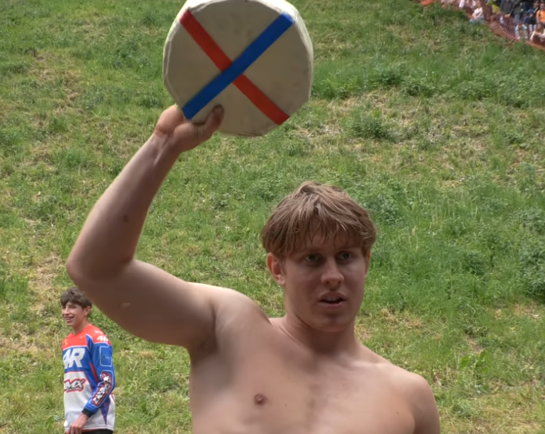 Όπως φαίνεται και στο βίντεο, μαζί με το τυρί κατρακυλούν επικίνδυνα και οι περισσότεροι διαγωνιζόμενοι!