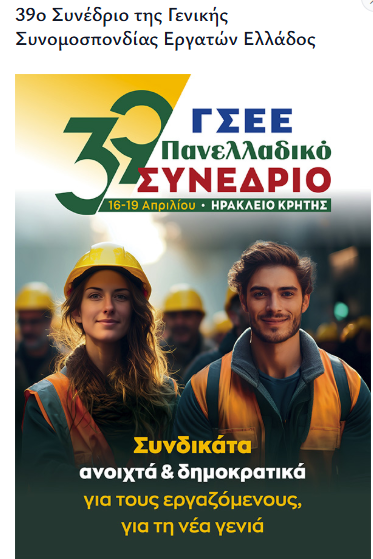 Το 39ο Συνέδριο της ΓΣΕΕ φιλοδοξεί να αποτελέσει ένα συνέδριο ουσίας, αποφάσεων και προοπτικής. Ένα συνέδριο που θα ενισχύσει τη συλλογική φωνή των εργαζομένων και θα συμβάλει στη διαμόρφωση μιας ισχυρής στρατηγικής για την προάσπιση της εργασίας, των μισθών και των κοινωνικών δικαιωμάτων.