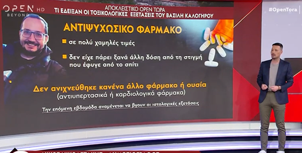 Παραδόθηκαν και επίσημα οι τοξικολογικές εξετάσεις του Βασίλη Καλογήρου, ο οποίος εντοπίστηκε νεκρός σε ερημική τοποθεσία στον Τύρναβο.