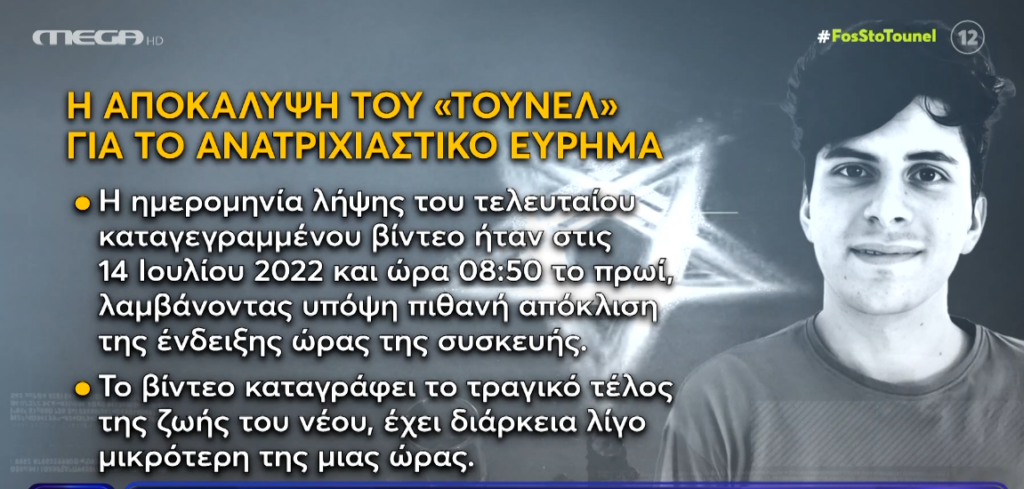 Όπως αποκάλυψε η εκπομπή, τα εγκληματικά εργαστήρια (ΔΕΕ) άνοιξαν το κινητό και βρήκαν ένα βίντεο που καταγράφει το τραγικό τέλος του φοιτητή.